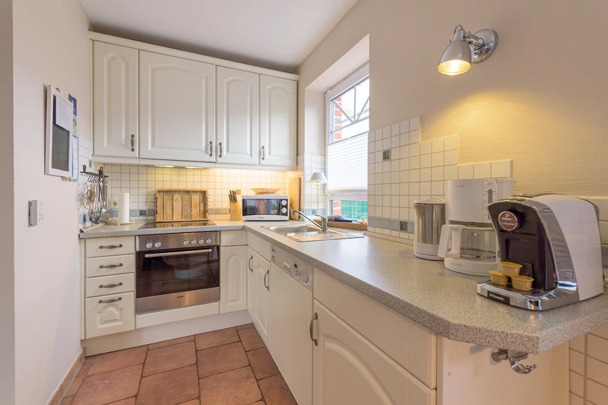 Auch in der voll ausgestatteten Küche wird es Ihnen an nichts fehlen. Cafissimo und ein Waffeleisen sind selbstverständlich.
