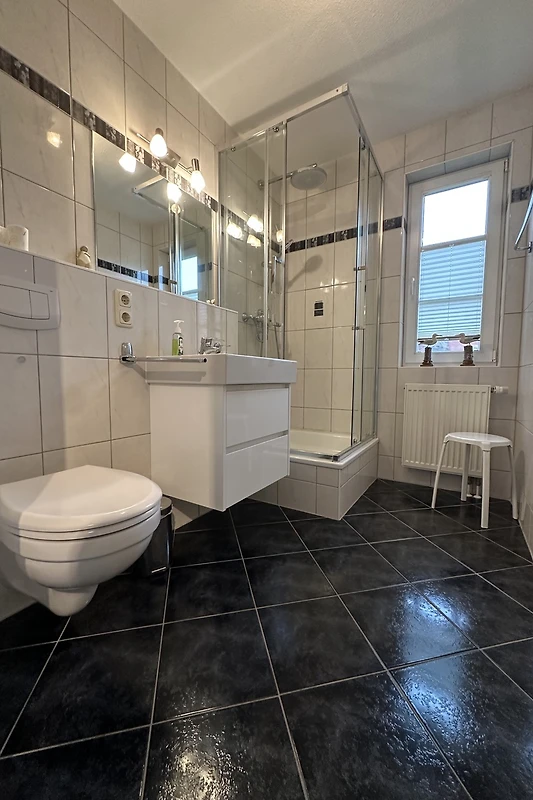 Badezimmer mit Dusche/WC und Waschmaschine