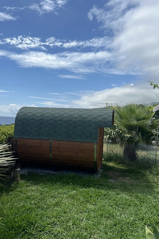 Seit September 2025 gehört eine Sauna zum Gästehaus. Diese Fasssauna befindet sich unmittelbar neben dem Haus. Während des Saunierens auf den Pico und den Atlantik zu schauen, gibt es noch etwas Schöneres? Die Sauna steht zur kostenfreien Nutzung zur Verfügung. Zu deinen Saunagängen möchtest du einen bestimmten Farbton der Innenbeleuchtung? Gern, du kannst die Beleuchtung frei bestimmen. Aus einer Vielzahl von Düften kannst du dir deinen Saunaaufguss aussuchen und natürlich bekommst du auch ein großes Saunatuch und die entsprechende Saunabekleidung.