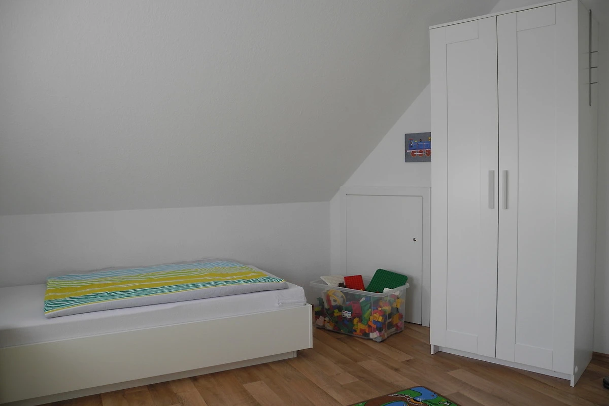 Schlafzimmer mit 2 Einzelbetten • Spiel-/Lese-/TV Zimmer mit SAT-TV / DVD / Stereoanlage / Sitzsack / Sofa / Kinderreisebett • Duschbad mit Veluxfenster.
