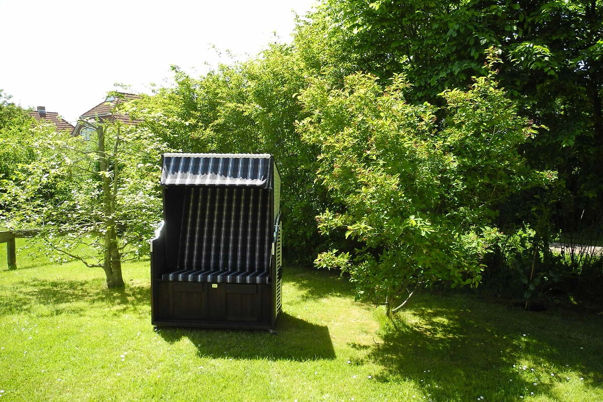 Außen: Südterrasse mit gemütlichen Gartenmöbel • Strandkorb • Liegen • Sonnenschirm • Grillkamin mit Zubehör • Gartenhaus für Möbel + Auflagen etc • Gartenhaus an der Einfahrt für eigene Fahrräder (vorhandene Fahrräder + Bollerwagen zur kostenfreien Nutzung vorhanden) • gepflasterter Pkw-Stellplatz am Haus
