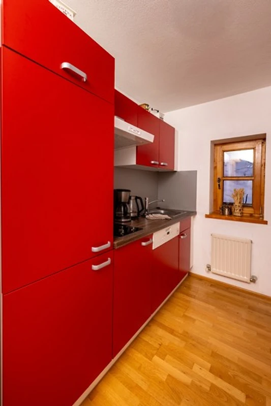 Das Luxus-Apartment mit 65 m² eignet sich ideal für Paare und Familien bis zu 5 Personen. Das Wohnzimmer besteht aus einer Joka Ausziehcouch und einer Sitzcouch. Die Vollholzküche ist im Wohnzimmer integriert mit einem großen Esstisch welcher die Holzfarben der Küche beinhaltet. Das gesamte Wohnzimmer ist mit einem speziellen Backsteinboden und einer handgeschlagenen Holzdecke ausgestattet.