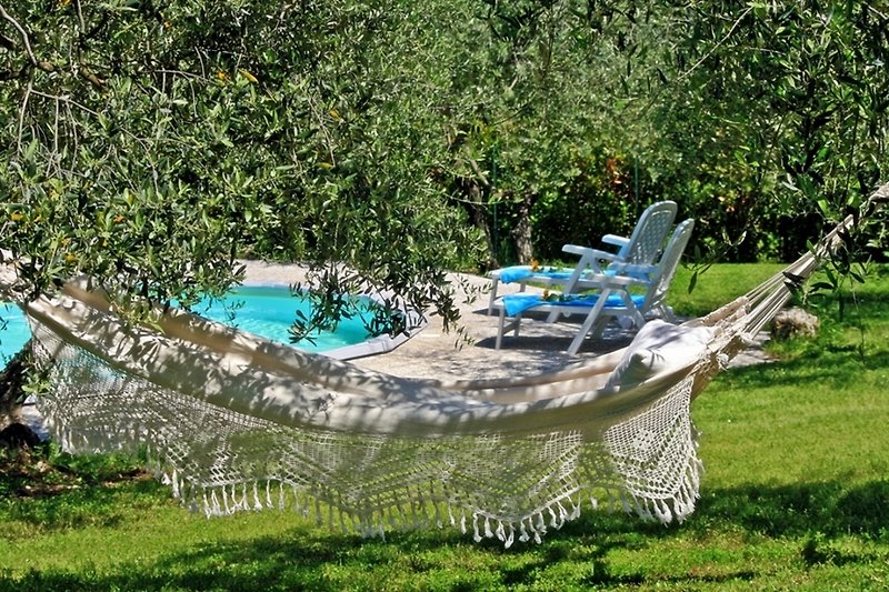 The villa is surrounded by an extensive olive garden, completely enclosed and provided with an inviting 5 x 7 m. private swimming pool, available from April to October.