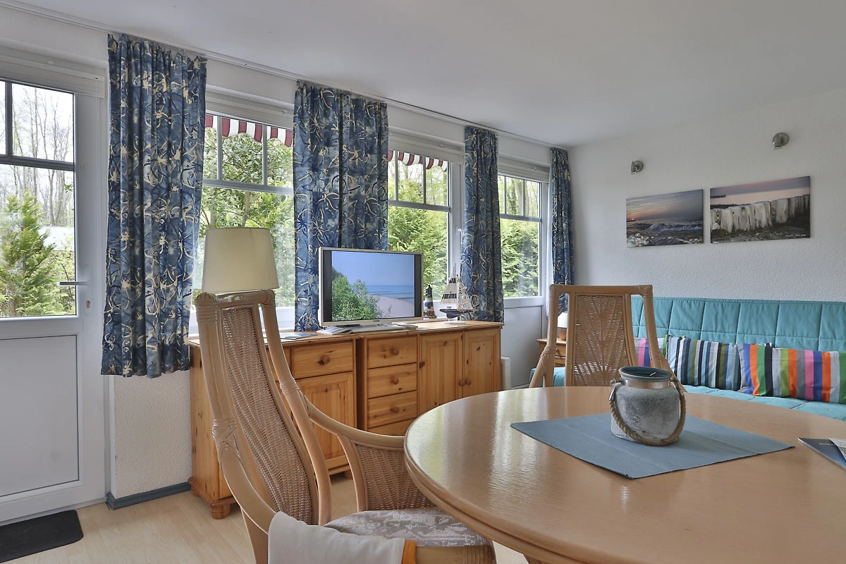 Dieser Bungalow "Leuchtturm", direkt am wunderschönen Gespensterwald gelegen, verfügt über 1 Schlafzimmer mit Doppelbett (180x200 cm) und im 2. Schlafzimmer stehen 2 Einzelbetten (90x200 cm) zur Verfügung. Das Wohnzimmer ist mit TV, Esstisch und Couch, welche in ein Doppelbett verwandelt werden kann, ausgestattet. Die Küche ist modern eingerichtet mit Herd und Backofen. Auf der Terrasse erwartet Sie ein Strandkorb sowie Terrassenmöbel und eine Markise sorgt für den Sonnenschutz. Ein Kinderreisebett und Hochstuhl kann auch kostenfrei genutzt werden, muss aber vorher angemeldet werden. Ein PKW-Stellplatz ist direkt auf dem eingezäunten Grundstück und auch die Fahrräder können hier angeschlossen werden.