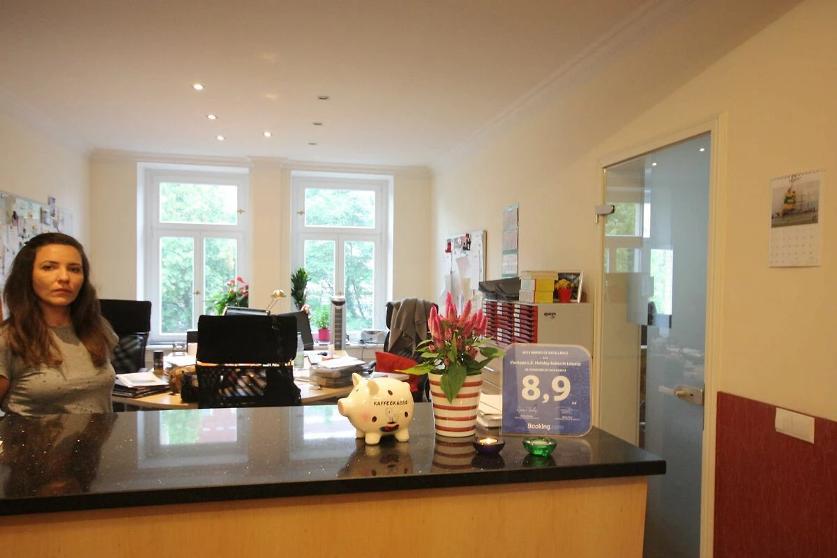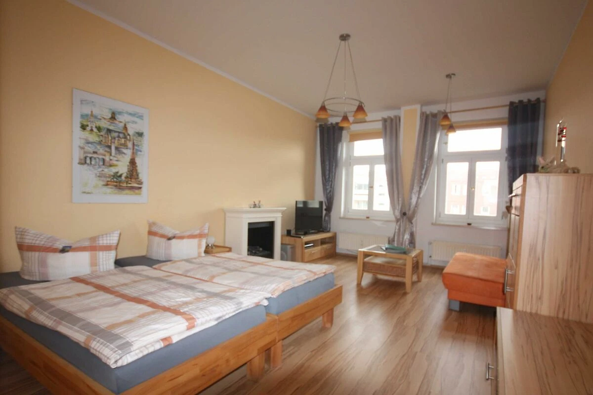 Unser unter Denkmalschutz stehendes Gründerzeithaus wurde 1891 gebaut und 1993 komplett saniert. Die Apartments wurden 2013 bis 2018 renoviert und liegen nur knapp 2 km vom Stadtzentrum entfernt. Alle Apartments verfügen über eine Küche(-nzeile), Schlafzimmer, Wohnzimmer und ein separates Bad, teilweise mit Badewanne und Waschmaschine in der Wohnung. Die Wohnungen bieten Platz für bis zu 5 Personen. Fussläufig sind ein Einkaufsmarkt (mo-sa 6-22 Uhr) sowie diverse Geschäfte im Reudnitz-Center erreichbar. Restaurants finden Sie ebenfalls in der direkten Umgebung. Die Wohnungen liegen in Hochpaterre bis zum 4. Stock des Hauses. Bitte beachten Sie, dass unser Haus bauzeitbedingt über keinen Aufzug verfügt. Unsere Rezeption im 1. OG ist Mo-Fr von 14-17 Uhr für Sie geöffnet. Gerne beantworten wir Ihnen Fragen und sind bei der Planung Ihrer Ausflüge behilflich. Alle Wohnungen verfügen über WLAN, das kostenfrei genutzt werden kann. Ihren Pkw können Sie kostenfrei auf unserem hauseigenen, eingezäunten Parkplatz abstellen. Strassenbahnhaltestelle in 150 Meter Entfernung. Bei Anreisen nach 17 Uhr oder am Wochenende rufen Sie uns bitte zur Terminabstimmung an. Ihr Jürgen Bodenstab mit Familie und Team.