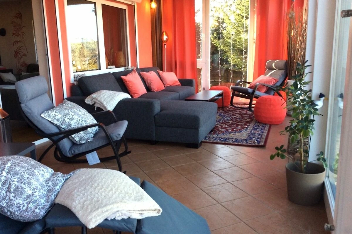 Ebenfalls stehen eine Tischtennisplatte, ein Kicker Raum und ein Riesentrampolin kostenfrei zur Verfügung. Die Internet-WLAN-Verbindung ist ebenfalls kostenlos. Der grosse Garten ist ideal geeignet zum Spielen oder Relaxen.