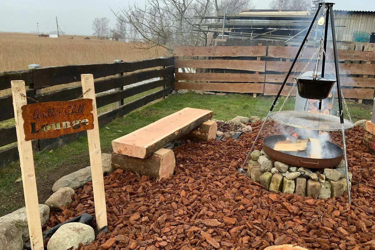 Ein weiteres Highlight ist die urige Grill- und Chill-Lounge im Garten direkt am Peene-Strom. Hier stehen Ihnen zwei Feuerschalen, Stockbrotspiesse, ein grosser Gulaschtopf und ein Grillrost zur Verfügung. Hier oder auf der danebenliegenden Terrasse können Sie Ihre gemütlichen Grillabende verbringen.