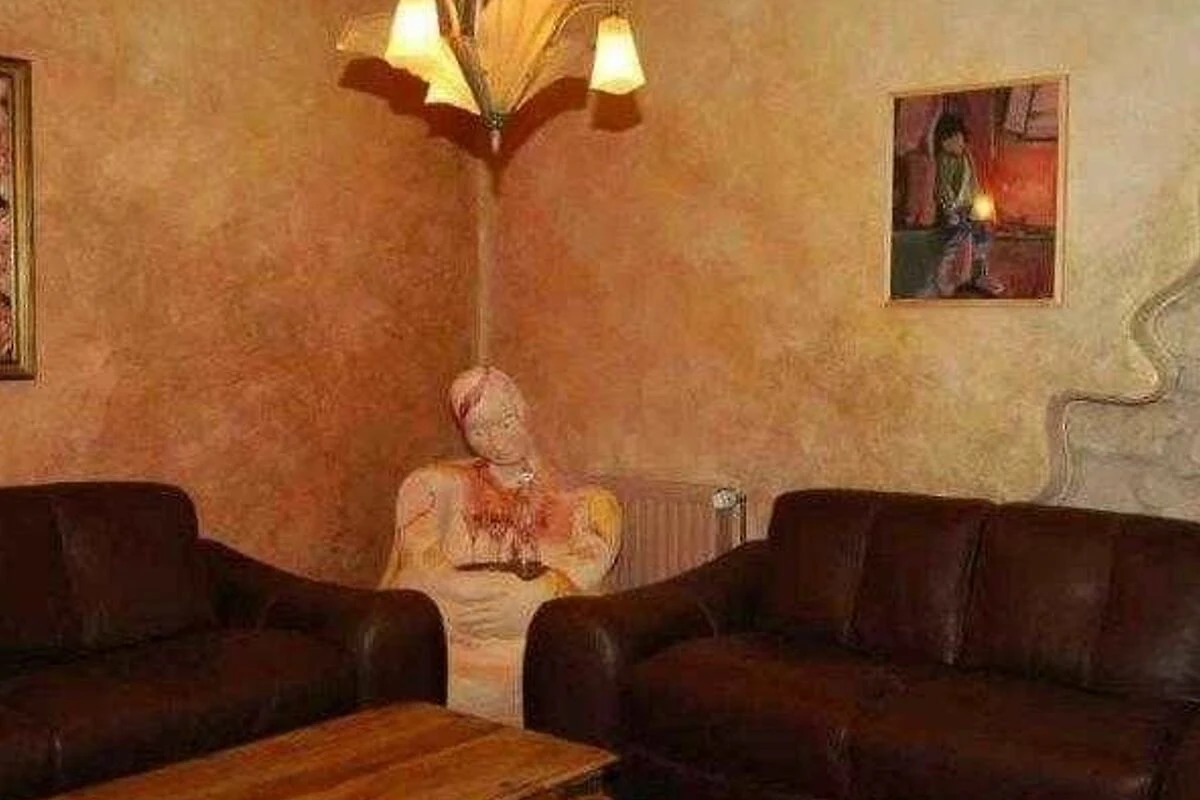 und mit vielen antiken Möbeln, Bildern und Skulpturen ausgestattet.