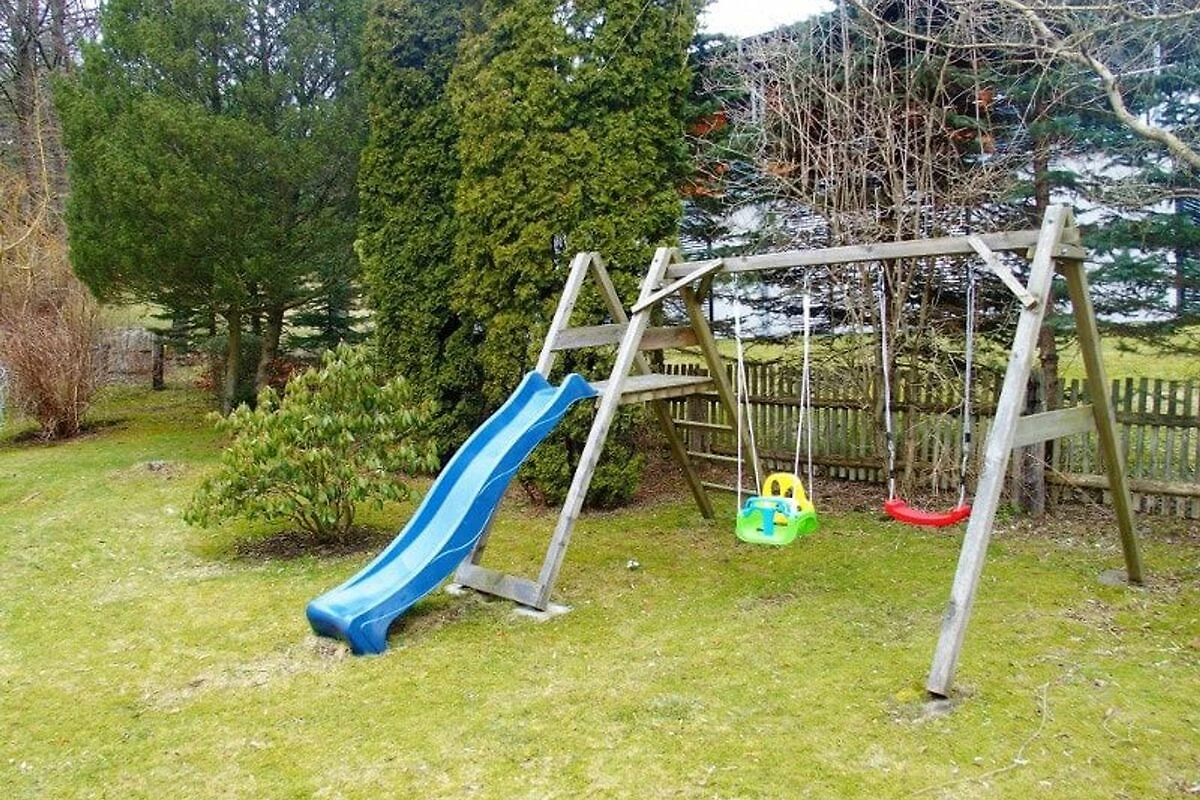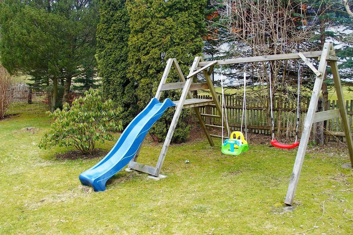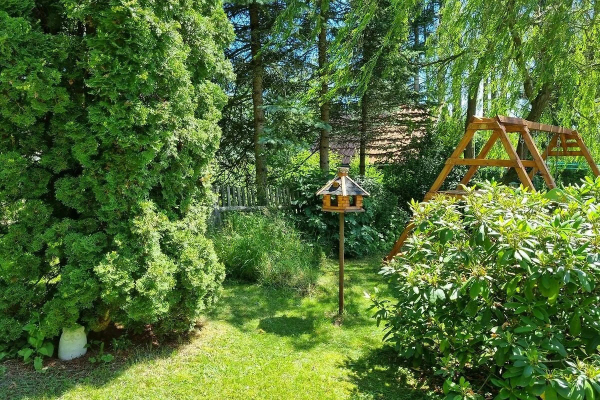 Draussen wartet unser schöner, zum Teil naturbelassener Garten auf Sie. Entspannen Sie auf der Sonnenterrasse mit Grill, während die Kinder sich auf der Schaukel, der Rutsche oder einfach auf der grossen Wiese austoben.
