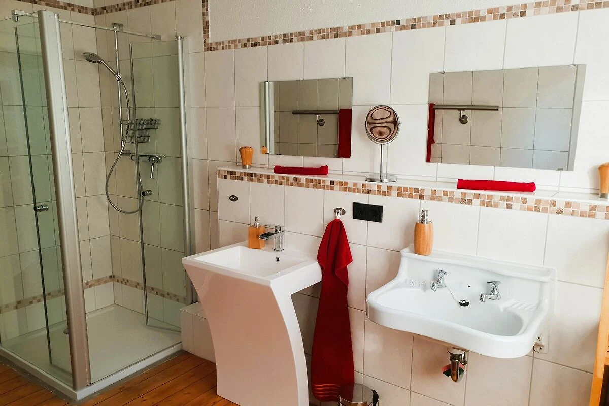 Ein modernes Badezimmer mit Dusche sorgt für den perfekten. Start in den Tag und damit es morgens keinen Stau gibt, steht zusätzlich ein 2. WC zur Verfügung.