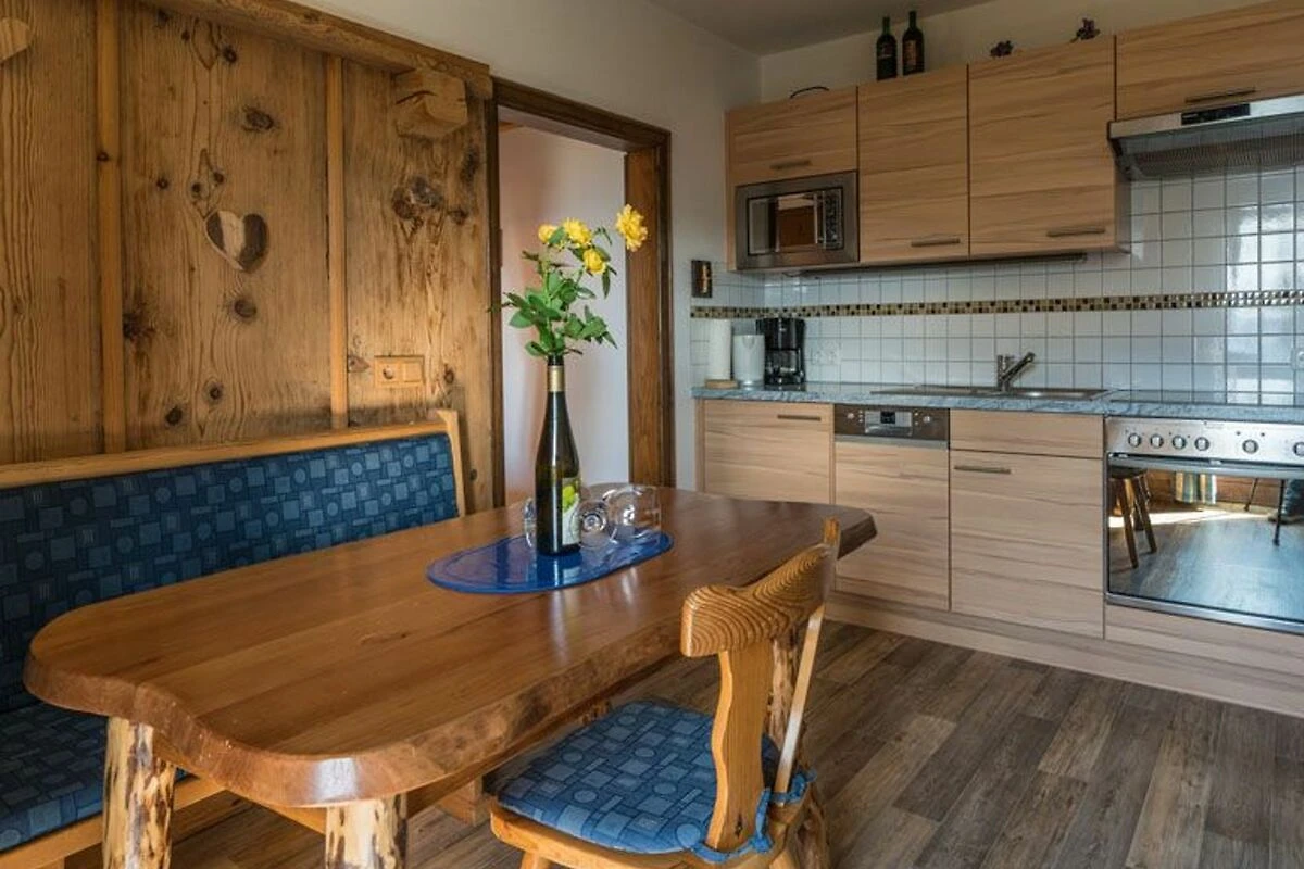 Die Möbel in den Appartements sind zum Grossteil aus Massivholz und wurden von mit viel Liebe zum Detail hergestellt. Das urige Arbeiten aus Holz gibt es auch direkt zu kaufen. Wenn man Gefallen an der Einrichtung und Wohnaccessoires findet, einfach fragen nach dem selbst hergestellten Laternen, Bartischen, Weihnachtskrippen und mehr! Auch Wildspezialitäten aus dem hauseigenen Gehege stehen zum Verkauf.