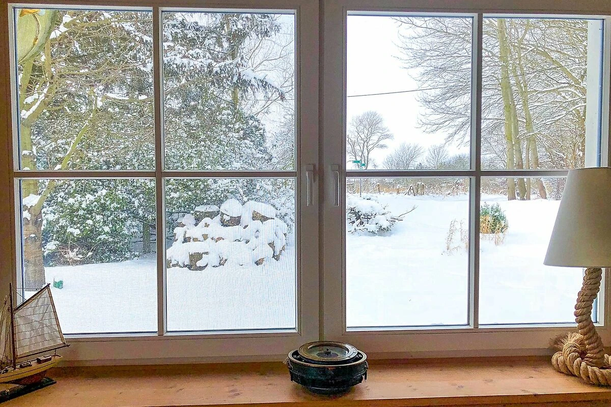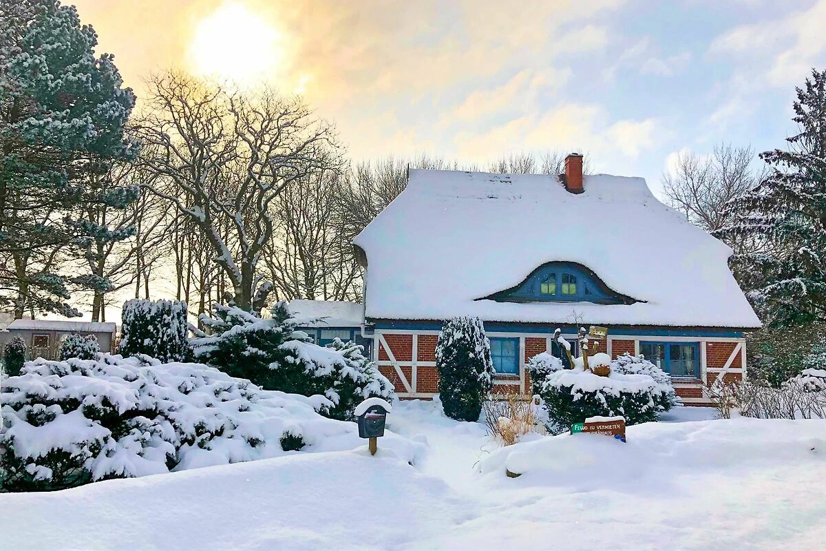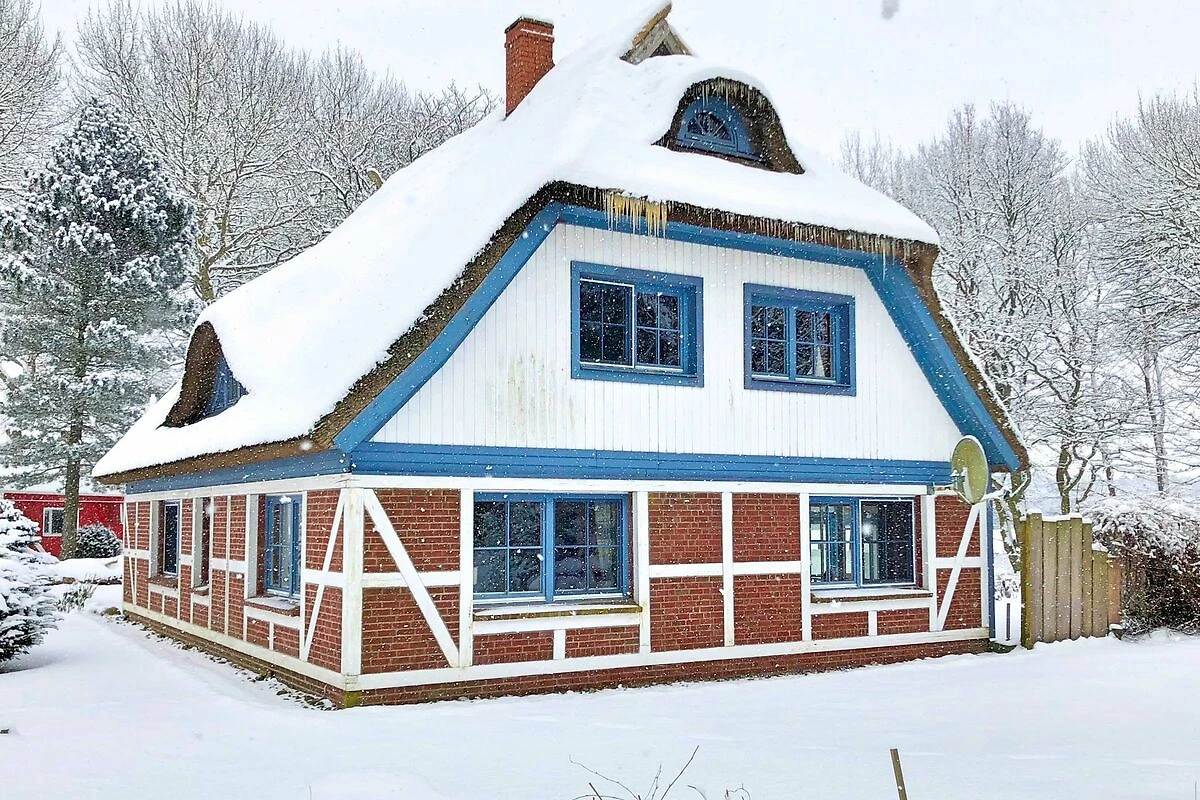 Die Ferienwohnung erstreckt sich über das 1. und 2. Obergeschoss des Reetdachhauses. Im 1. Obergeschoss befinden sich der Wohnzimmerbereich, welcher sich in Wohnzimmer mit Sitzgelegenheiten, TV sowie die offene Küche mit Essbereich gliedert. Die Küche ist mit Kühlschrank, E-Herd, Geschirrspüler, Wasserkocher, Toaster, Kaffeemaschine und weiteren nützlichen Küchenhelfern ausgestattet. Die zwei Schlafzimmer im 1. Obergeschoss verfügen über jeweils ein Doppelbett (180x200, bzw. 160x200; beide mit getrennten Matratzen), Nachttisch, Leselicht und Radiowecker sowie über diverse Verstaumöglichkeiten für Kleidung und Gepäck. Ebenso befinden sich im 1. Obergeschoss das Badezimmer mit Dusche, WC und Fön sowie das Gäste-WC. Im 2. Obergeschoss befindet sich das dritte Schlafzimmer mit 4 Einzelbetten (90x200).