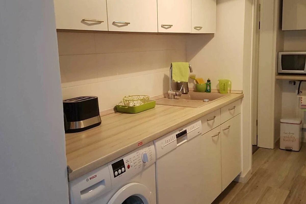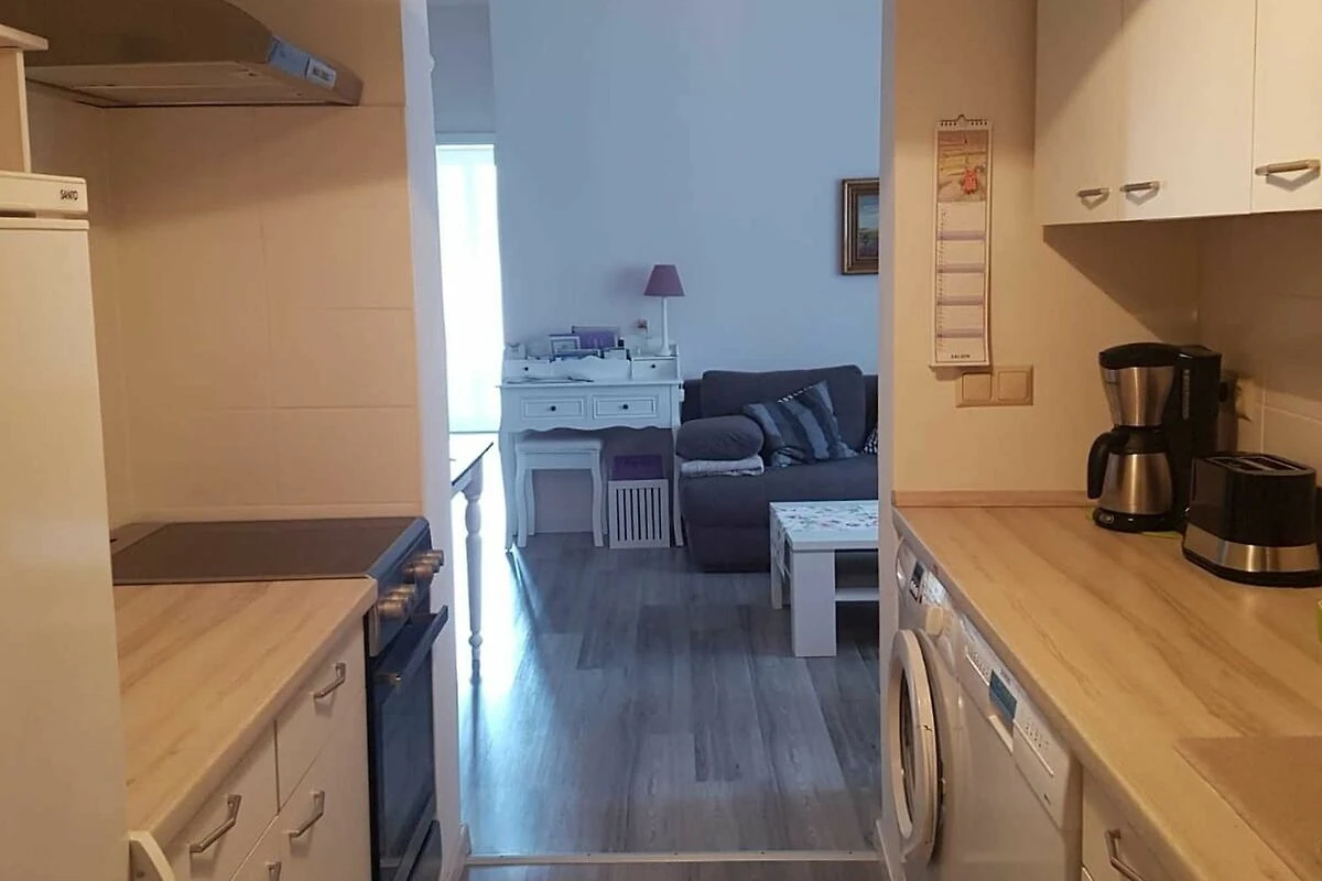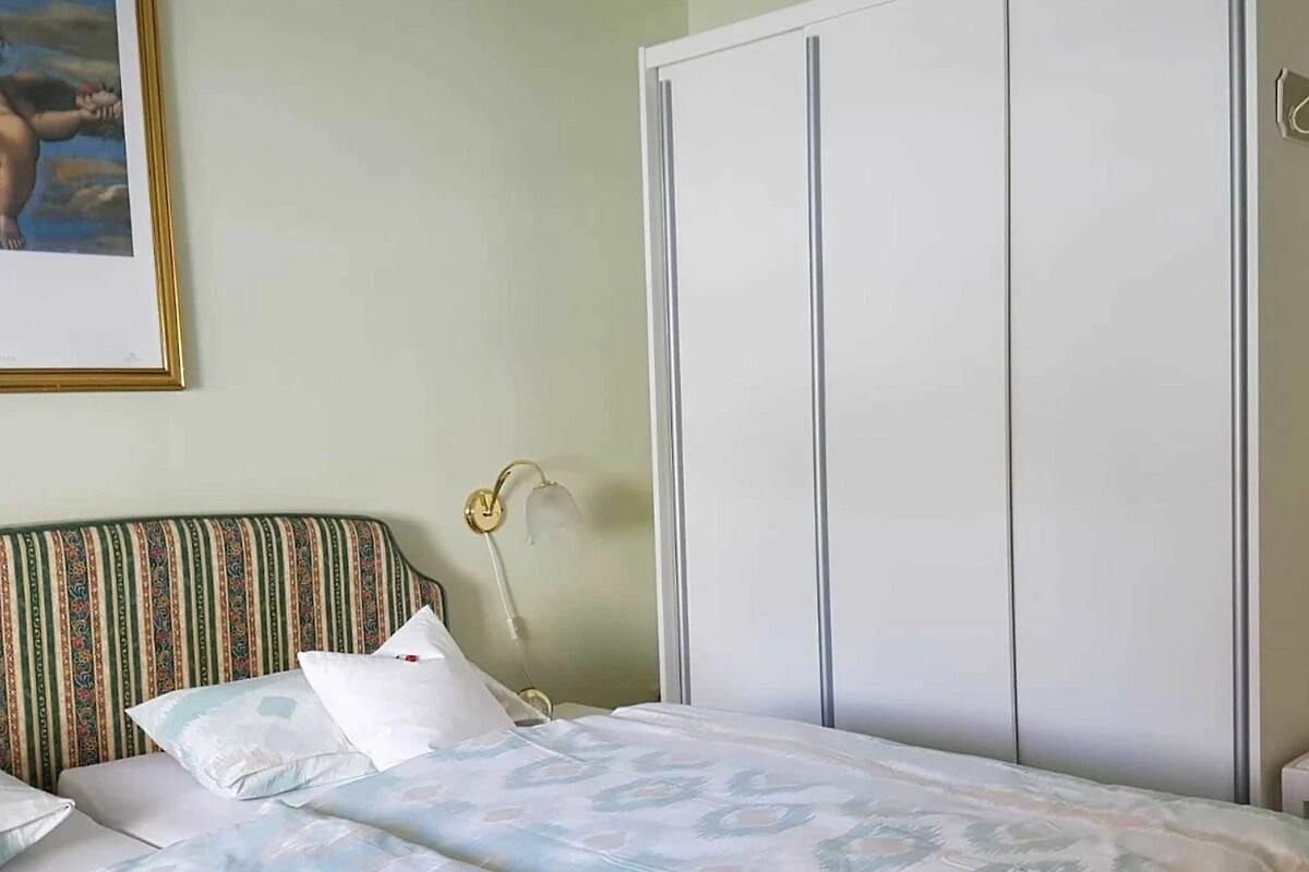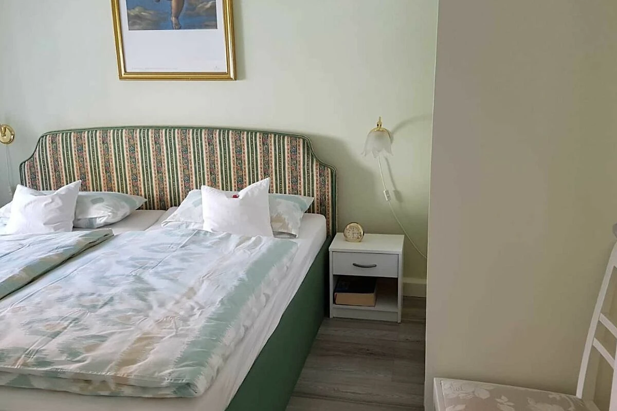 Das Schlafzimmer ist mit einem Doppelbett ausgestattet. Im Wohnzimmer befindet sich eine Schlafcouch für eine Aufbettung für maximal 2 Personen. Eine komplett ausgestattete Küche mit Waschmaschine, Geschirrspüler, Herd, Mikrowelle, Kaffeemaschine und einem Brötchenaufbackofen. Neben der Küche befindet sich eine Kammer, die zum Abstellen der Koffer etc. genutzt werden kann.