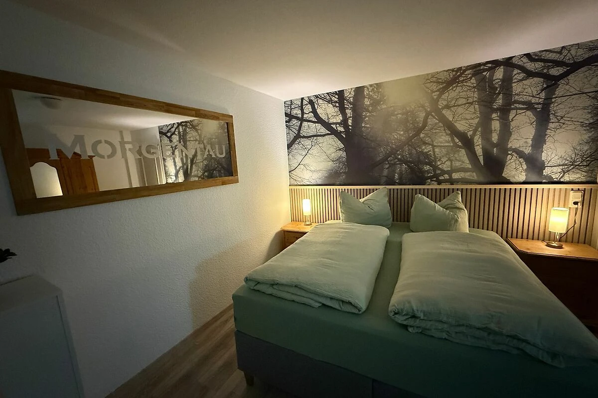 Unsere Ferienwohnungen Morgentau, Wanderlust, Harztraum und Bergmoment bieten für unterschiedliche Bedürfnisse den passenden Rückzugsort von gemütlichen Einheiten für Paare bis hin zu grosszügigen Wohnungen für Familien oder Freunde. Die Wohnung Bergmoment befindet sich im oberen Geschoss des Hauses und bietet dort als ruhiger Rückzugsort über den Dächern der Altstadt besonders viel Privatsphäre. Alle Wohnungen überzeugen durch eine durchdachte Raumaufteilung, modernen Komfort und die besondere Lage direkt an der historischen Stadtmauer.