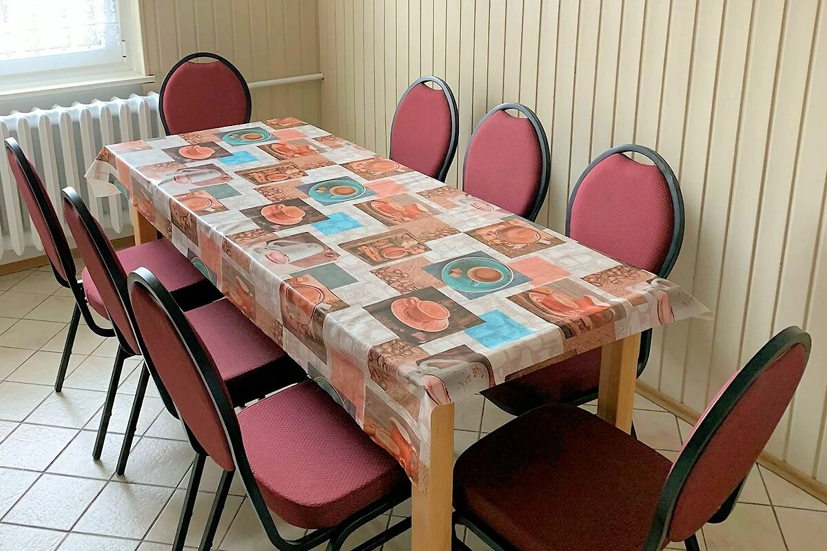• vollwertige Küche mit Esstisch, Sitzecke und Stühlen