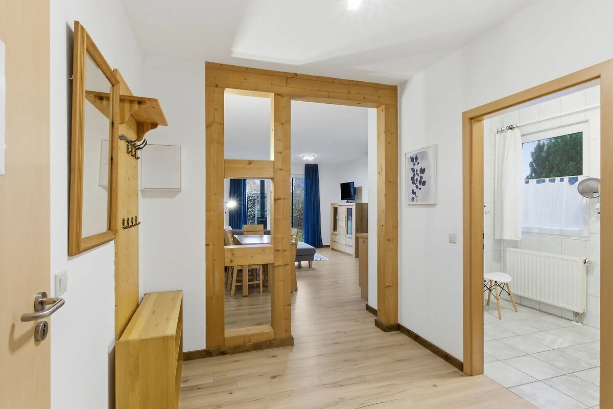 Die Ferienwohnung bietet mit einer grosszügigen Küchenzeile, zwei getrennten Schlafzimmern, einem gemütlichen Wohn- und Essbereich sowie einem grosszügigen Duschbad Komfort für alle Lebensbereiche. Darüber hinaus bietet die Wohnung einen direkten Zugang zum Garten mit eigener grossen Terrasse mit Sitzgruppe. Im Garten finden Sie zudem Sonnenliegen sowie einen Grillplatz mit wetterfestem Unterstand.