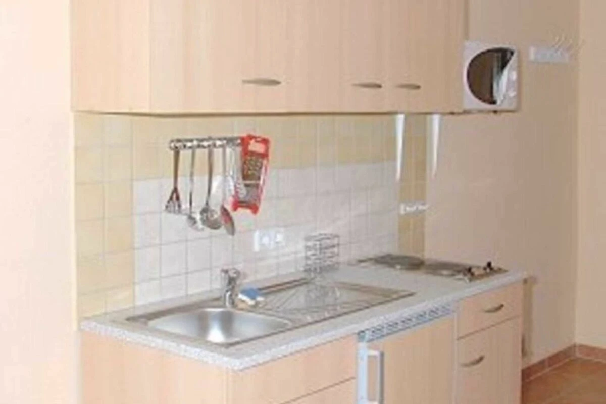 2005 neu eingerichtet, Erdgeschoss, 30 m², ruhige Lage, für 2 Erwachsene, kombiniertes Wohn-Schlafzimmer mit 2 Sesseln, Couchtisch, kleine Schrankwand mit Sat-TV und Doppelbett. Komplette Küchenzeile mit Wasserkocher, Toaster, Kaffeemaschine, Microwelle. Badezimmer mit Dusche und WC. Die Wohnung verfügt über eine Terrasse mit Sitzmöbeln sowie über eine Sitzgelegenheit mit Gartenmöbeln auf dem Grundstück.