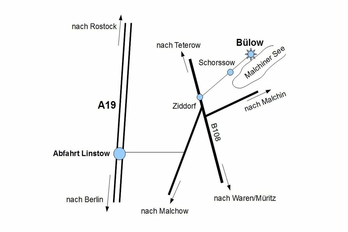 • liegt trotz Natur pur sehr verkehrsgünstig: von der A19 (Berlin - Rostock) sind es z.B. nur 20 landschaftlich schöne Autominuten bis hierher