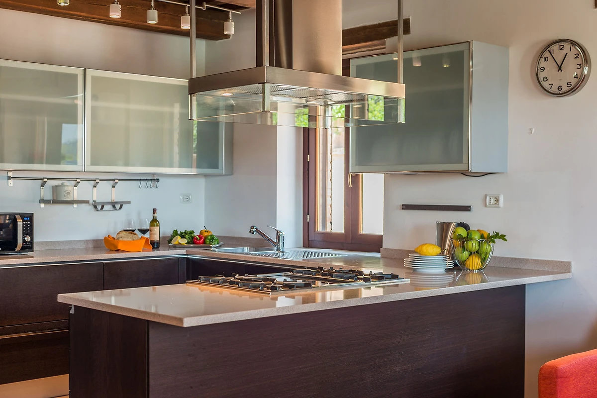 Die Villa verteilt sich über drei Etagen. In Parterre ein helles Wohnzimmer mit Kamin und Eßtisch, eine gut ausgestattete Küche mit Loungebereich, Duschbad und Waschküchenbereich. Auf der ersten Etage ein Doppelzimmer, ein Dreibettzimmer, ein Badezimmer mit Dusche und Wanne, Duschbad und Zweibettzimmer das führt ins Obergeschoss mit Doppelzimmer mit Duschbad.