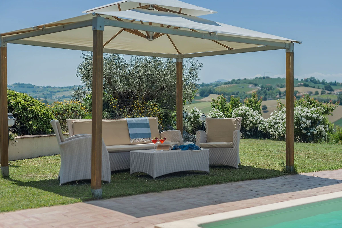 Villa Greta ist eine wunderbare Privatvilla mit Swimmingpool in den Marken, nicht weit vom Meer. Das Anwesen ist vollkommen umzäunt und von einem großen Garten mit einem Swimmingpool mit römischer Treppe umgeben. Den Gästen steht eine Veranda mit Tischen, Stühlen und Liegen zur Verfügung, um im Freien essen und relaxen zu können. Im Poolbereich gibt es auch einen eingerichteten Pavillon und eine Veranda mit Jacuzzi.