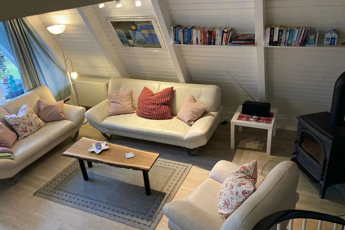 Neben der technischen Unterhaltung bietet das Haus eine gemütliche Essecke und ein 3er und 2er Leder-Sofa, Sessel und Hocker. Das Wohnzimmer wird abgerundet durch den stilvollen Kaminofen mit Büchern und Spielen zum Entspannen. Holz können Sie bei Bedarf gerne im nahe gelegenen Edeka-Markt erwerben. Im Erdgeschoß ist neben einem Flur, ein Bad mit WC und Dusche sowie einer vollausgestatteten Küche mit Kühlschrank. Hier finden Sie Gefrierfach, Geschirrspüler, Waschmaschine, Backofen, Herd inkl. Ceranfeld, Mikrowelle, Toaster, Wasserkocher, Mixer, Filter-Kaffeemaschine sowie Kaffee-Padmaschine (Senseo), Waffeleisen, Indoor-Grill usw.