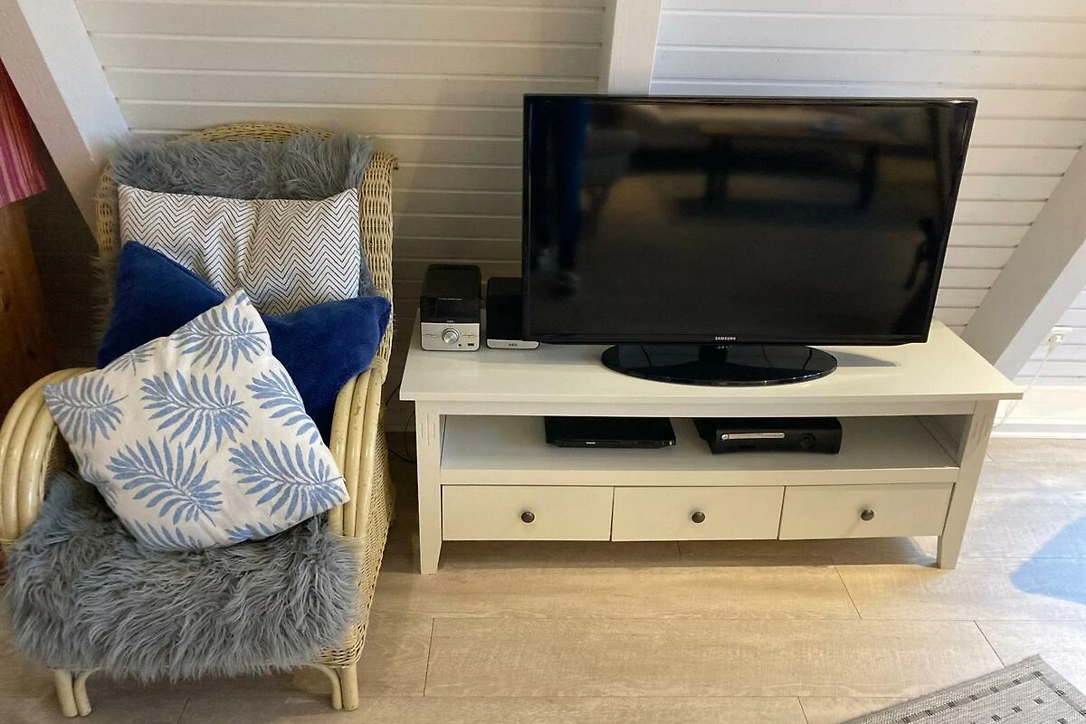 Ein HDTV 40 Zoll Flachbildschirm (FULL-HD/ Sat-Anschluss) inkl. Google Chromecast im Erdgeschoß sowie einer Teufel Box Boomster und YAMAHA WX 010 Bluetooth-Lautsprecher 'runden' das helle Wohnzimmer ab. Das Ferienhaus hat einen kostenfreien WLAN-Anschluss mit 100.000 kbit/s und hat zudem eine X-Box.