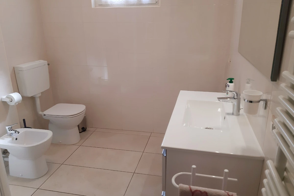 Bad mit Dusche, WC, Bidet, Waschbecken, Haartrockner und Bereitstellung von Toilettenpapier und flüssiger Handseife;