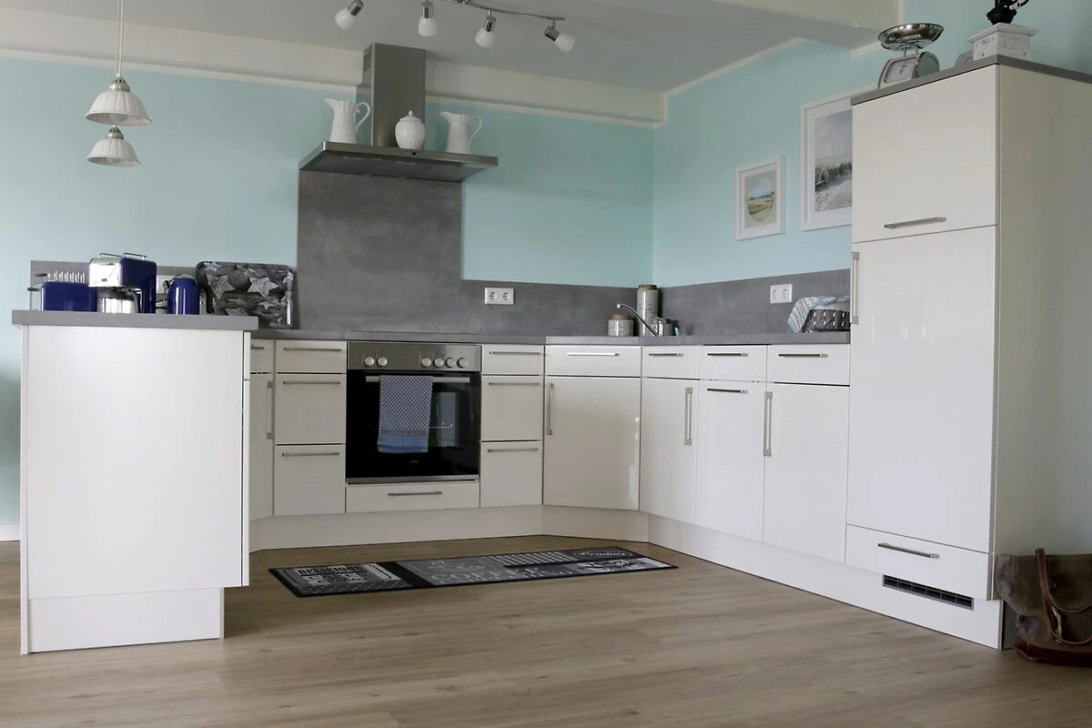 Gemütliche Sitzgarnituren laden im großzügigen Wohnbereich zum Verweilen ein und ein Elektro-Kaminofen sorgt zusätzlich für eine kuschlige Wohlfühlatmosphäre. Leckere Urlaubsmahlzeiten können Sie in der topmodernen, offen integrierten Küche zubereiten, die mit diversen technischen Annehmlichkeiten ausgestattet worden ist. Auch für mediale Unterhaltung ist mit dem Flachbild-TV, einem DVD-Player, einer Musikanlage und kostenfreiem Wlan gesorgt worden. Sollte es mal ein bisschen windig sein, können Sie sich es sich im kuschligen Strandkorb gemütlich machen! An der Nordseeküste, die nur 25 km entfernt ist, können Sie auf dem Deich ausgiebige Spaziergänge mit Blick aufs Wattenmeer unternehmen. Danach bietet sich ein entspannender Saunagang an: Im Nachbargebäude neben dem Ferienhaus darf eine Sauna kostenfrei mitgenutzt werden, die für das Rundum-Wohlfühlprogramm auch mit Ruheliegen und einem Kaffee-Vollautomat ausgestattet worden ist.