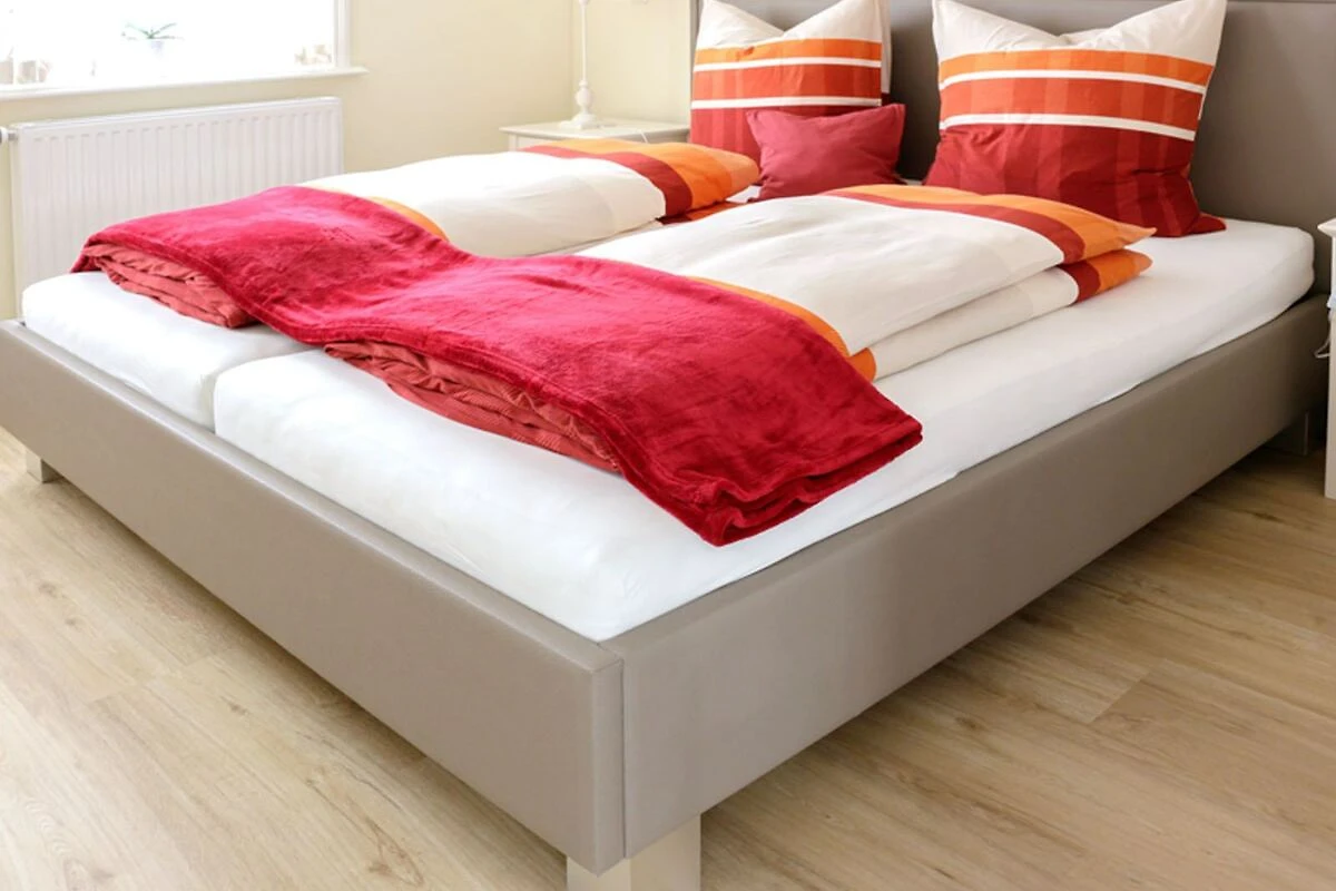 Nach erlebnisreichen Urlausbtagen sorgt das komfortable Doppelbett im Schlafzimmer für angenehme Nachtruhe und auf Anfrage kann zusätzlich auch ein Babyreisebett bereitgetellt werden. Ihr Kleinkind wird sich bestimmt über die Spielmöglichkeiten im Garten freuen, denn hier stehen eine Rutsche, ein Sandkasten und eine Schaukel zur Mitnutzung mit den Nachbar-Feriengästen bereit.