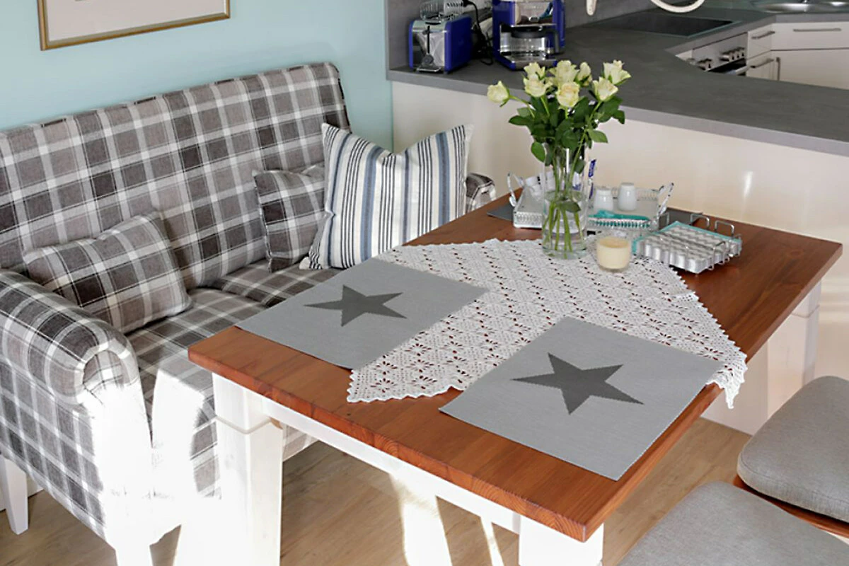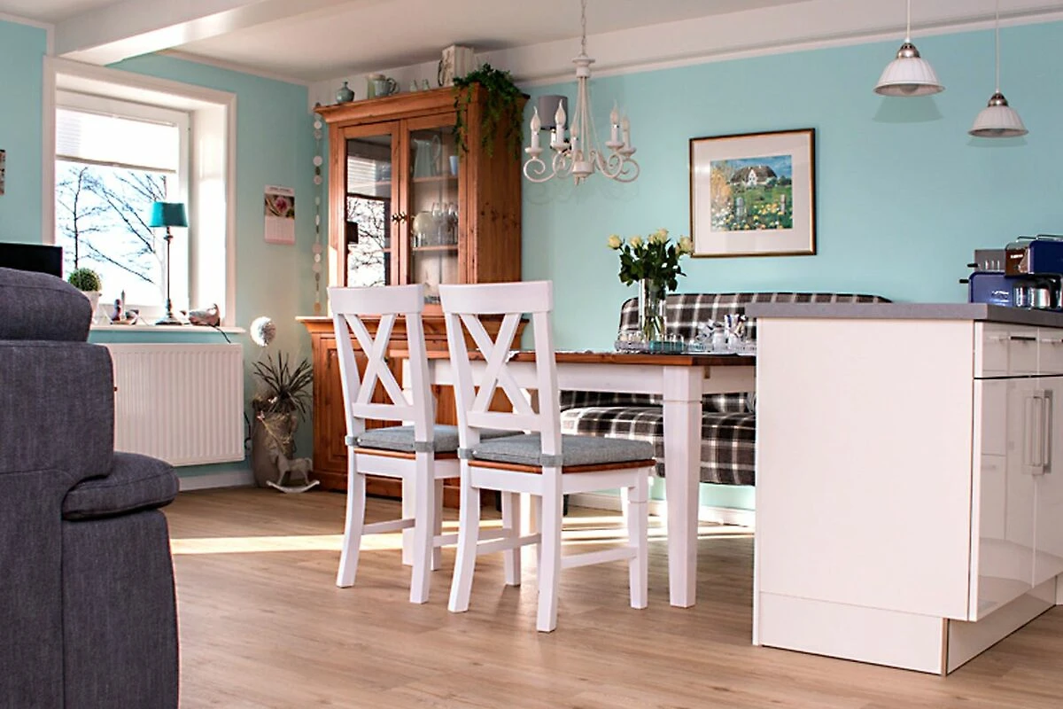 Unser Urlaubsdomizil wurde 2017 komplett renoviert und empfängt Sie als Doppelhaushälfte im ruhigen Ort Uphusum mit einer geschmackvollen Einrichtung im hübschen Landhausstil und frischen Akzenten in Mint- und Türkisfarbtönen, die wunderbar mit der grünen Landschaftsidylle harmonieren. Auch der große Außenbereich lädt zum Entspannen ein: Drei lauschige Sitzecken stehen Ihnen auf dem liebevoll bepflanzten, 2000 m² großen Gartengrundstück zur alleinigen Nutzung zur Verfügung und das angrenzende Wiesengrundstück (3000 m²) kann als Freifläche mitgenutzt werden. Für leckere Barbeques steht auch ein Holzkohlegrill bereit.