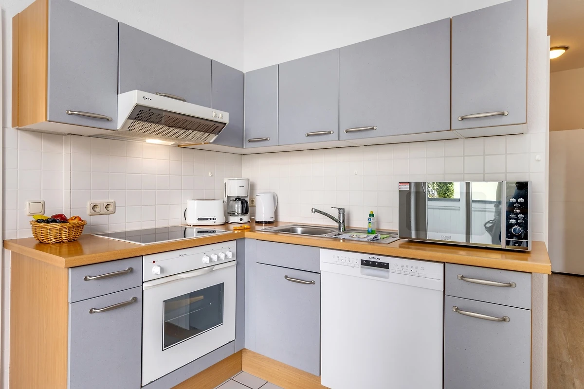 Die separate Küche ist ausgestattet mit Geschirrspüler, Backofen, Mikrowelle, Kühl-Gefrier-Kombination etc.