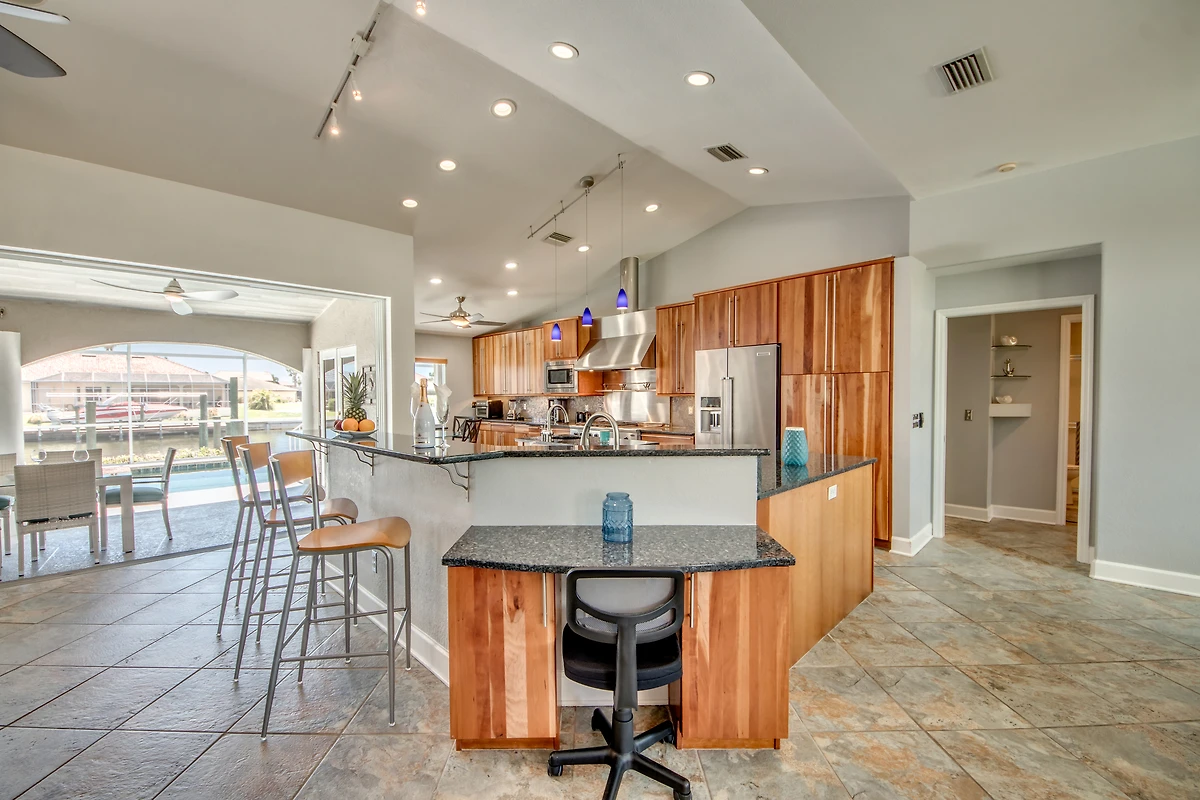 Dieses Ferienhaus liegt im beliebten Südwesten Cape Corals. Hier finden Sie eine tolle gewachsene Nachbarschaft. Die Straßen haben Fahrrad- bzw. Joggerwege und der Cape Harbour mit seinem Yachthafen, Restaurants und Eiscafe ist nicht weit entfernt.