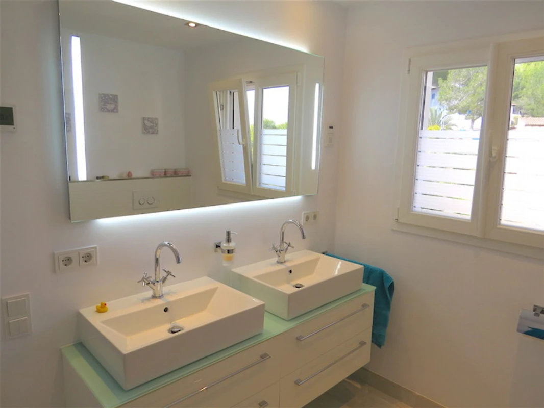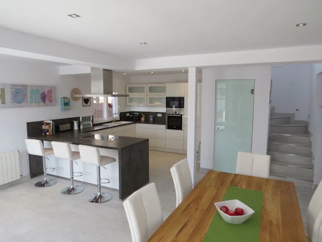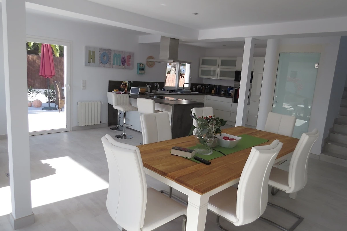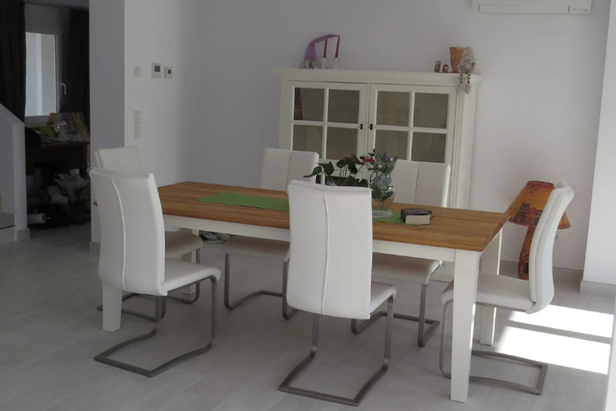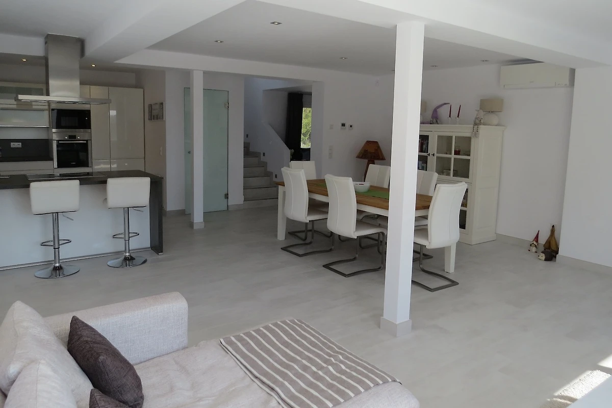 Unsere moderne Villa liegt in sehr ruhiger Umgebung und bietet auf großzügigen 150 m² Wohnfläche, verteilt auf zwei Ebenen, höchsten Komfort für bis zu 6 Personen – ideal für Familien, Paare oder Freunde, die Erholung, Privatsphäre und Qualität schätzen. Das gesamte Haus ist voll klimatisiert und sorgt auch an heißen Tagen für ein angenehmes Raumklima.