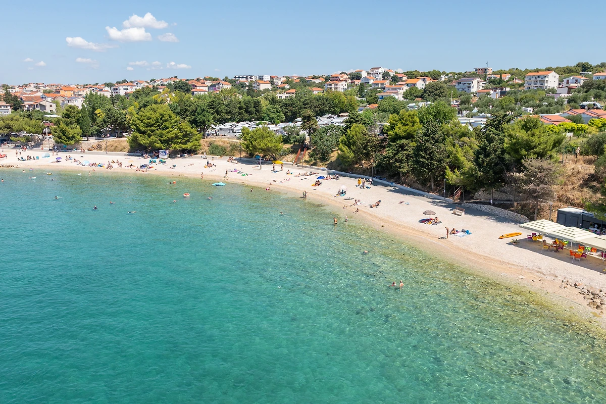 Der Strand Janice liegt direkt unterhalb des Campingplatzes, nur 50 m entfernt.