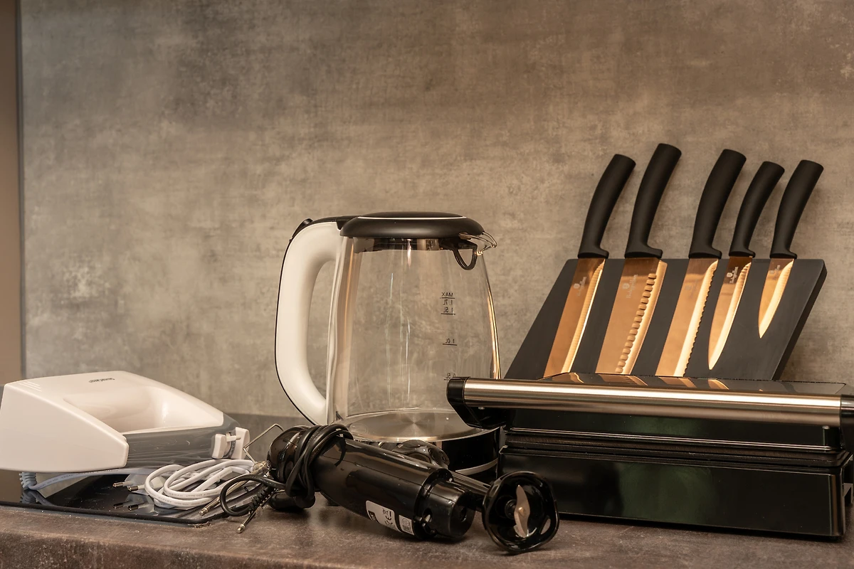 Die Küche ist komplett ausgestattet mit Geschirr und Küchengeräten wie Kaffeemaschine, Backofen, Mikrowelle, Toaster usw. Im Garten stehen ein Grill, Sonnenliegen und zwei Stand-Up-Paddle-Boards zur Verfügung.