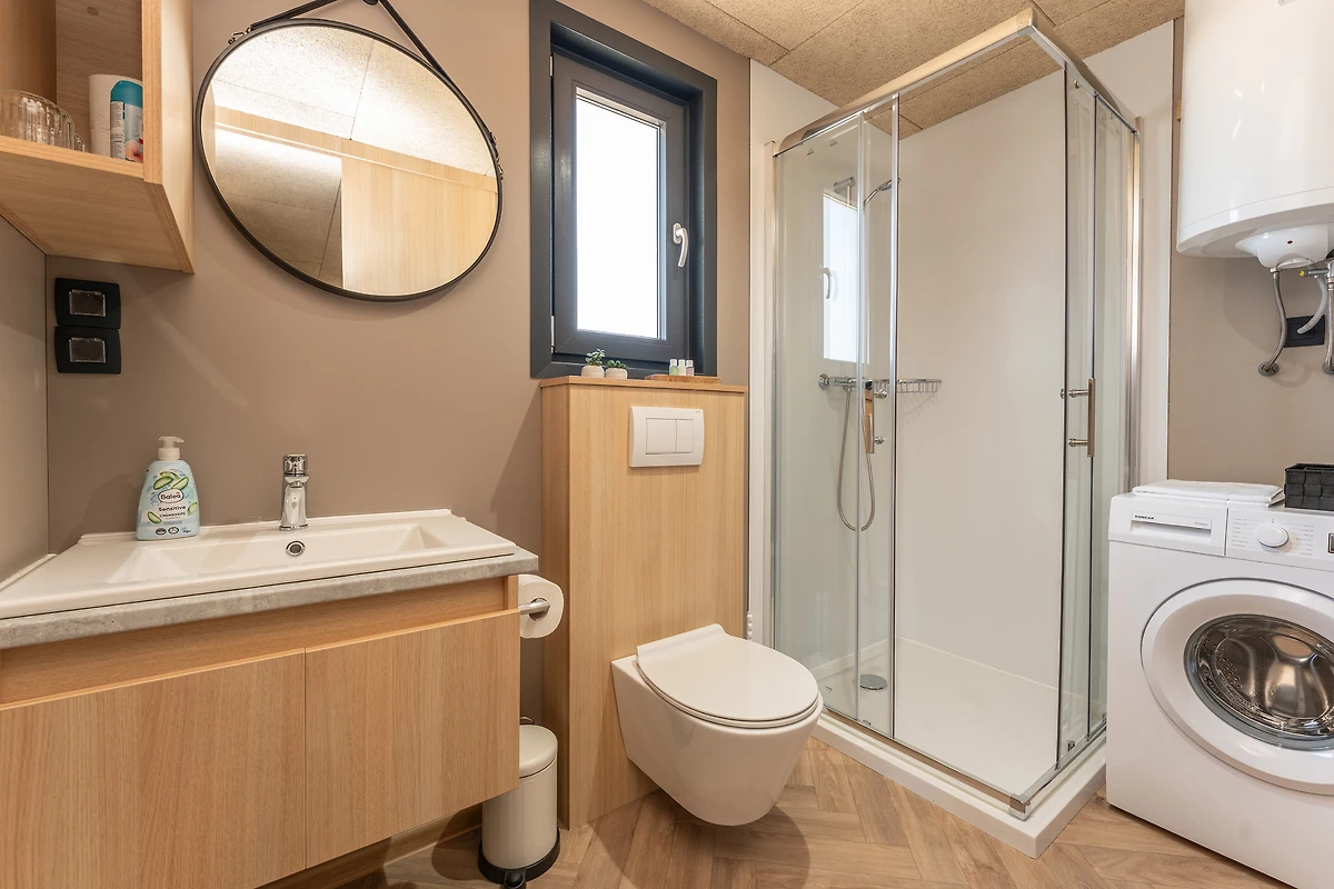 Das Mobilheim „Enjoy by Beach“ befindet sich im 4-Sterne-Campingplatz Skalinada, nur 100 m oberhalb des Strandes Janice und 800 m vom Zentrum von Pakoštane entfernt.