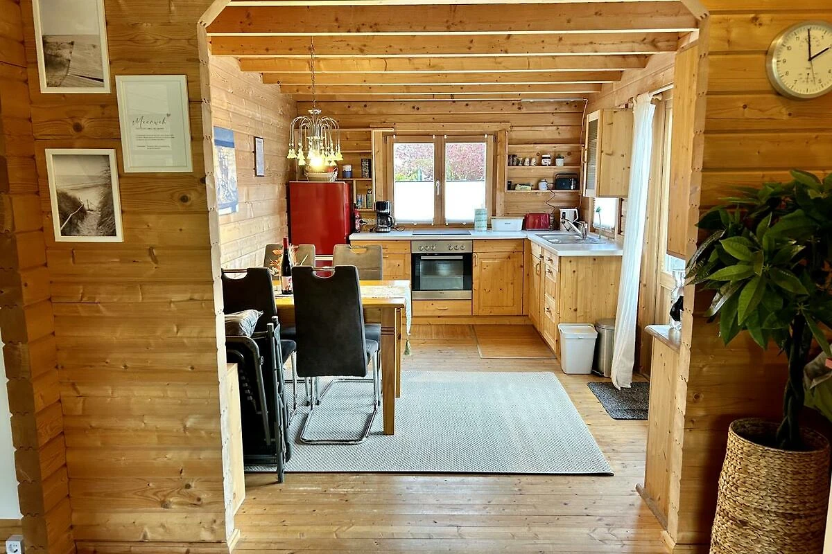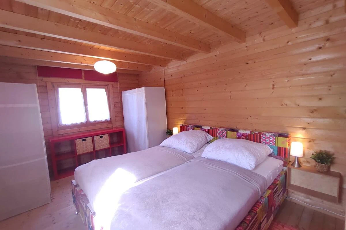 Das Holzferienhaus ist 85 m² gross und hat ein Wohnzimmer mit offener Küche sowie ein Schlafzimmer im EG mit Doppelbett (180x200 cm) und ein Schlafzimmer im OG mit Doppelbett (140x200 cm). Die Küche ist mit Herd, Backofen, Kühlschrank mit Gefrierteil, Kaffeemaschine, Toaster, Wasserkocher usw. ausgestattet.