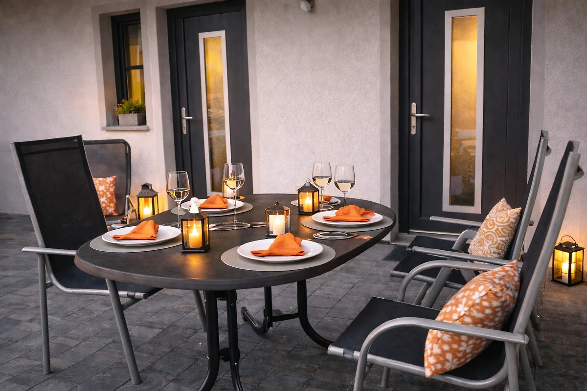 Komfortables Ferienhaus mit eigener Sauna, zwei Terrassen und großzügigem Wohnbereich.