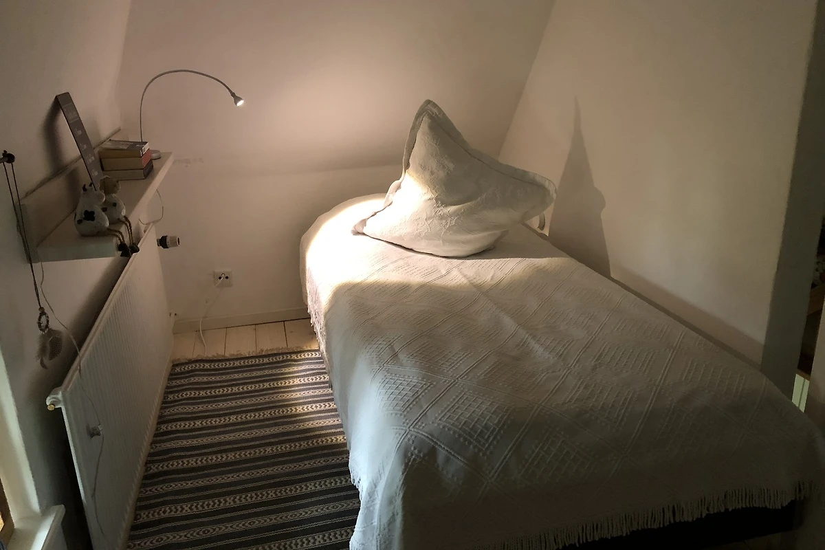 Im Dachgeschoss gibt es ein Schlafzimmer mit Einbaukleiderschrank und einem Doppelbett (140x200cm). Im zweiten Schlafbereich ein Einzelbett (90x200cm).