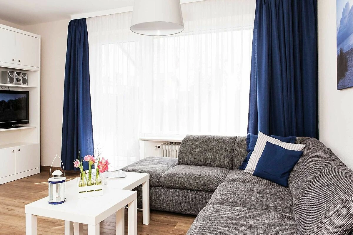 Diese geräumigen Ferienwohnungen mit ca. 55 m² sind für 2 bis 4 Personen vorgesehen. Sie umfassen jeweils ein Schlafzimmer mit zwei Einzelbetten oder einem Doppelbett, eine voll ausgestattete Küche mit Essplatz, sowie ein Badezimmer mit Dusche und WC. Hinzu kommt ein Wohnzimmer mit ausklappbarem Doppelbett, sowie einer gemütlichen Sofaecke zum Lesen oder Fernsehen. Zu jeder dieser Ferienwohnungen gehört entweder eine Terrasse oder ein Balkon.