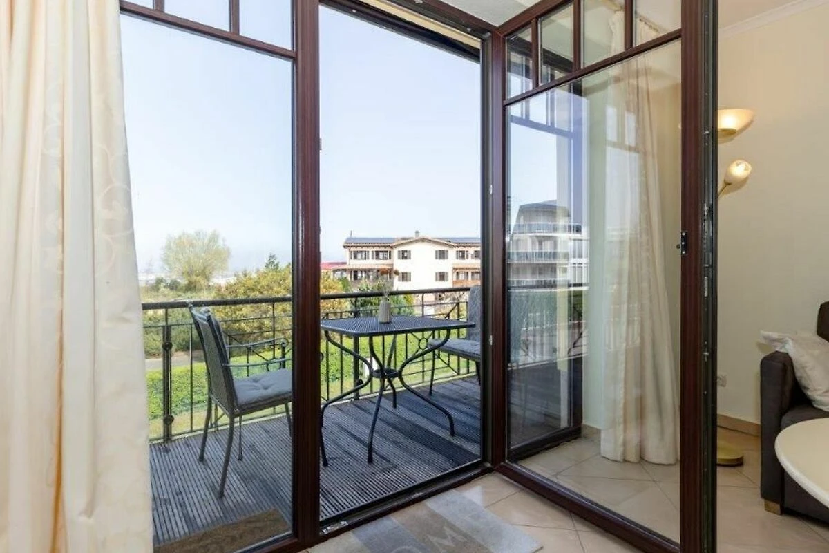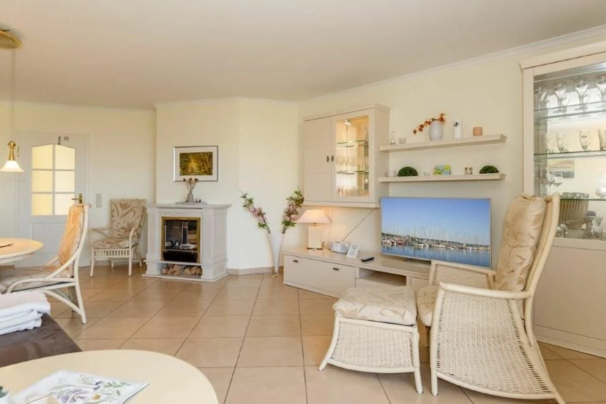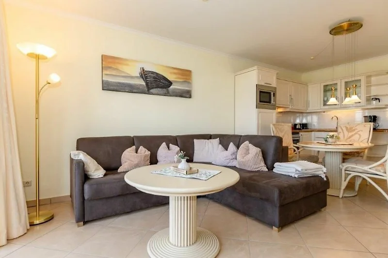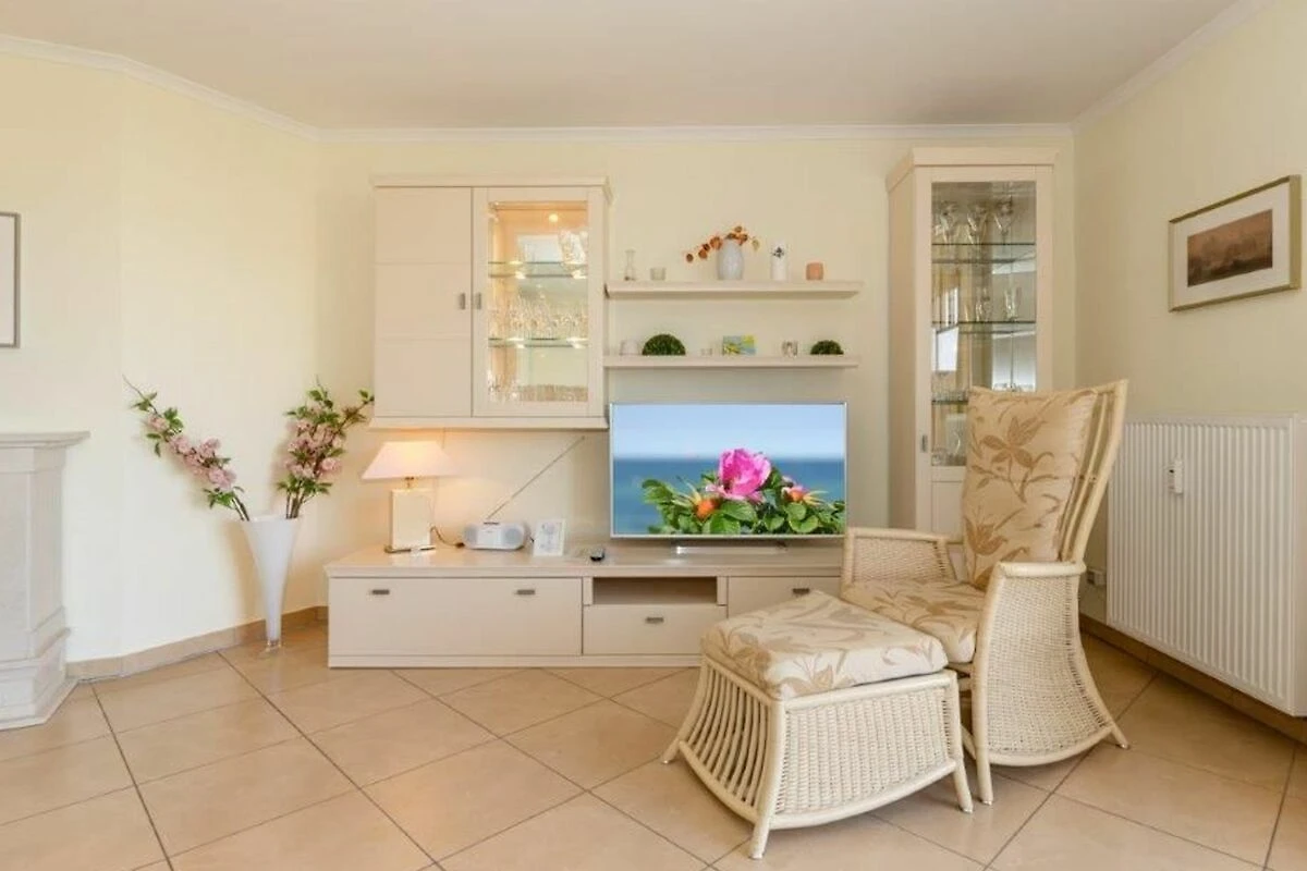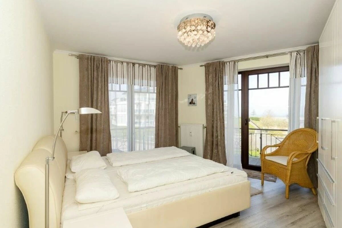 - in der 1. Etage/Aufzug - möblierter Balkon mit direktem Meerblick - Autostellplatz Nr. 1.12a - Tiefgarage (Einfahrtshöhe 2,00 m) - Fahrradkeller - Sauna inkl., Waschmaschine u. Trockner gegen Gebühr - Nichtraucherappartement! Keine Haustiere! - WLAN-Bereitstellung kostenfrei (ohne Gewähr) - Wohn/Schlafbereich mit Schlafcouch, integrierter Küche und Essplatz - Küchenzeile - Herd mit Backröhre, Mikrowelle, Kühlschrank mit Gefriermöglichkeit und Geschirrspüler - 1. Schlafzimmer mit Doppelbett und Kleiderschrank - DU/WC
