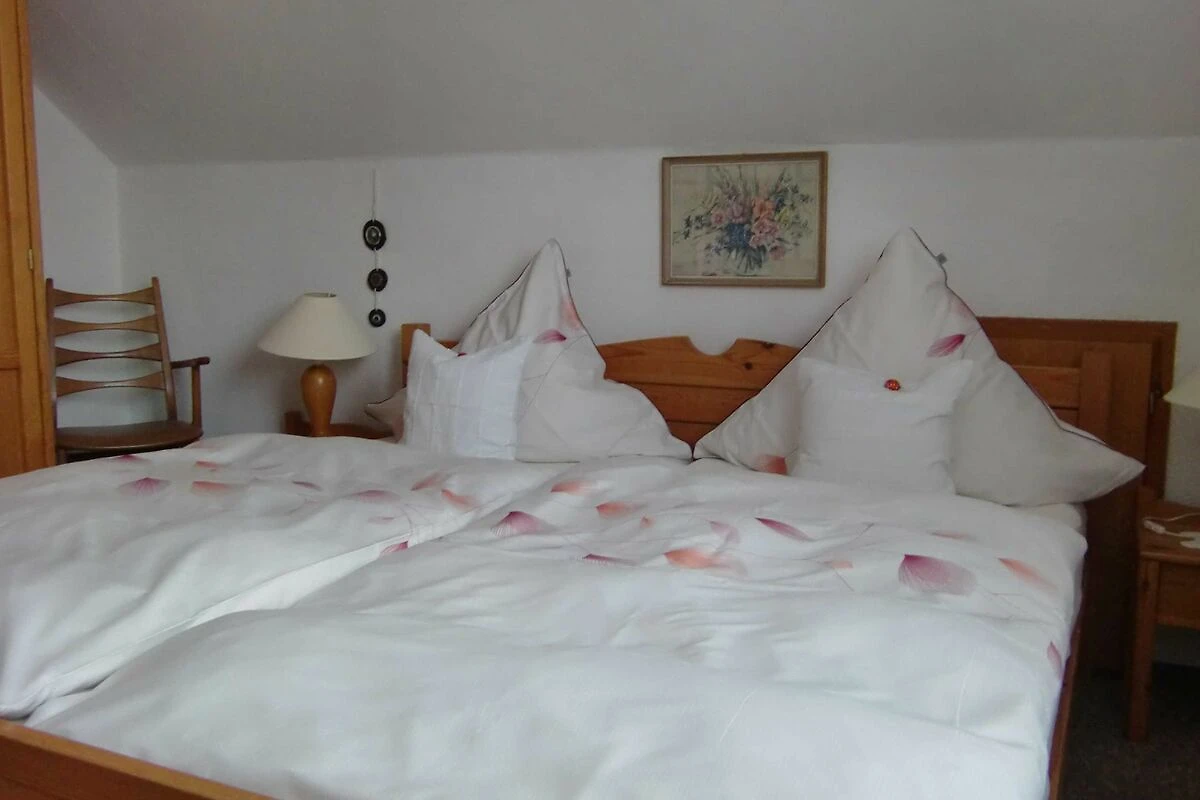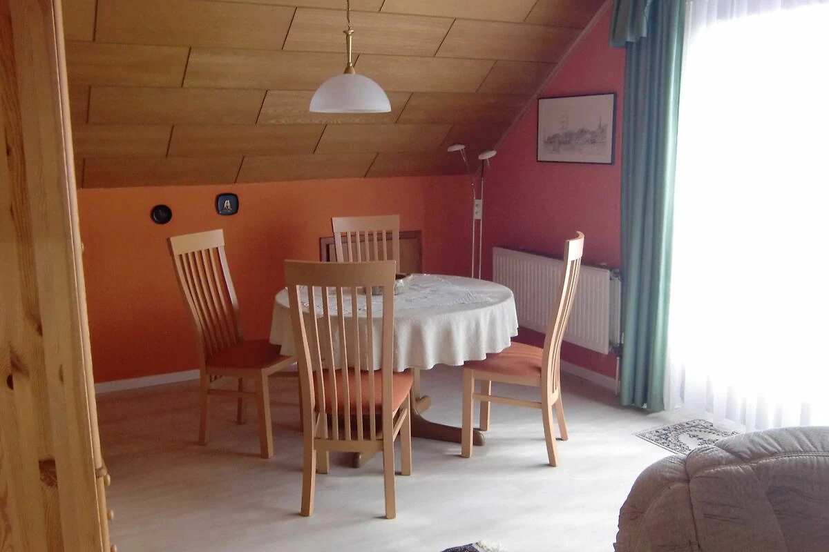 Geräumige 3-Zimmer-Wohnung (72 m²) im Obergeschoss eines Einfamilienhauses, grosses Wohnzimmer mit gemütlicher Sitzecke, SAT-TV, Essecke, Balkon, ein Schlafzimmer mit Ehebetten, ein Schlafzimmer mit zwei über Eck stehenden Einzelbetten, separate komplett eingerichtete Küche, Dusche/WC. Die Betten sind bei Anreise bezogen und Handtücher liegen bereit.