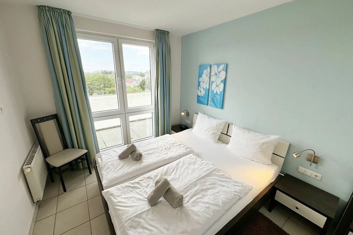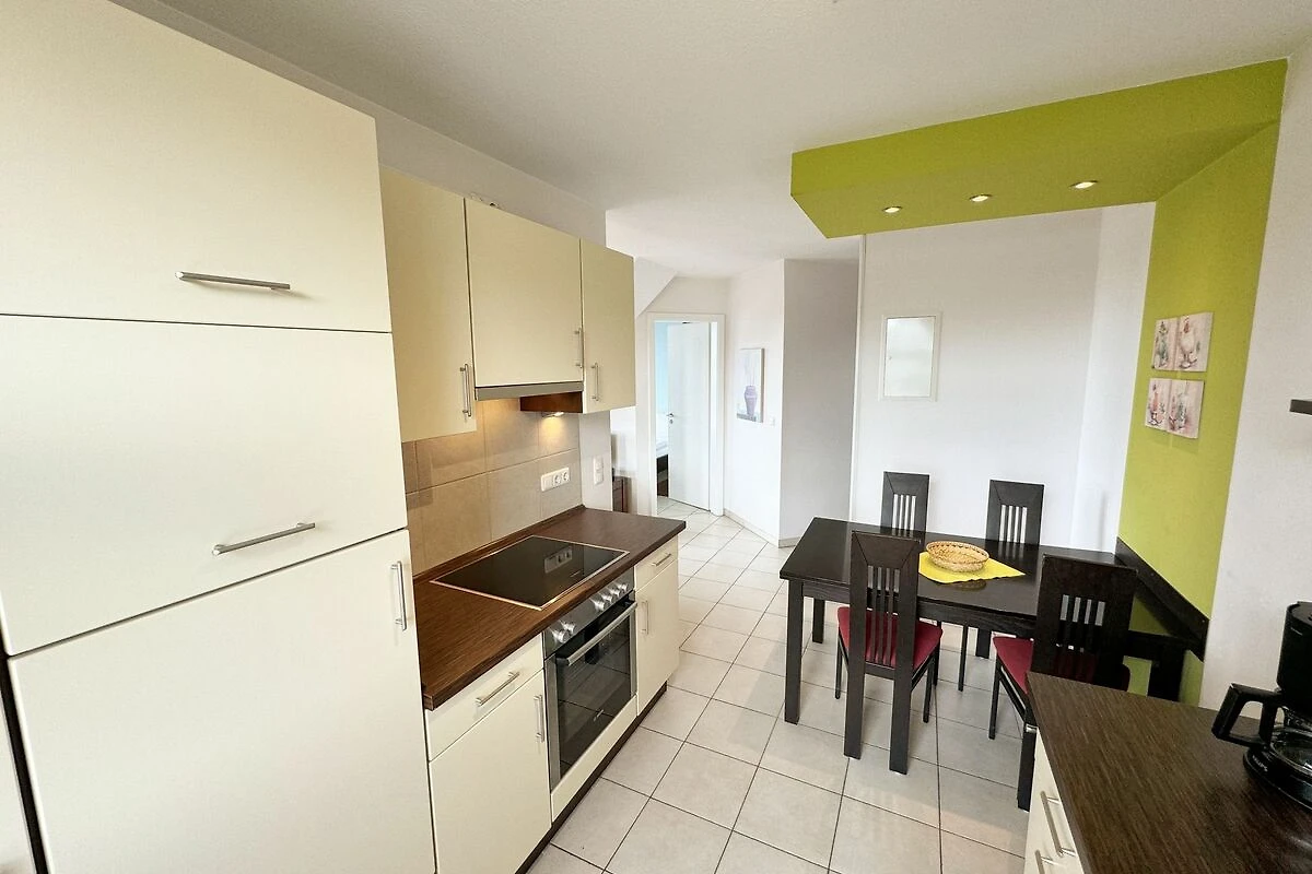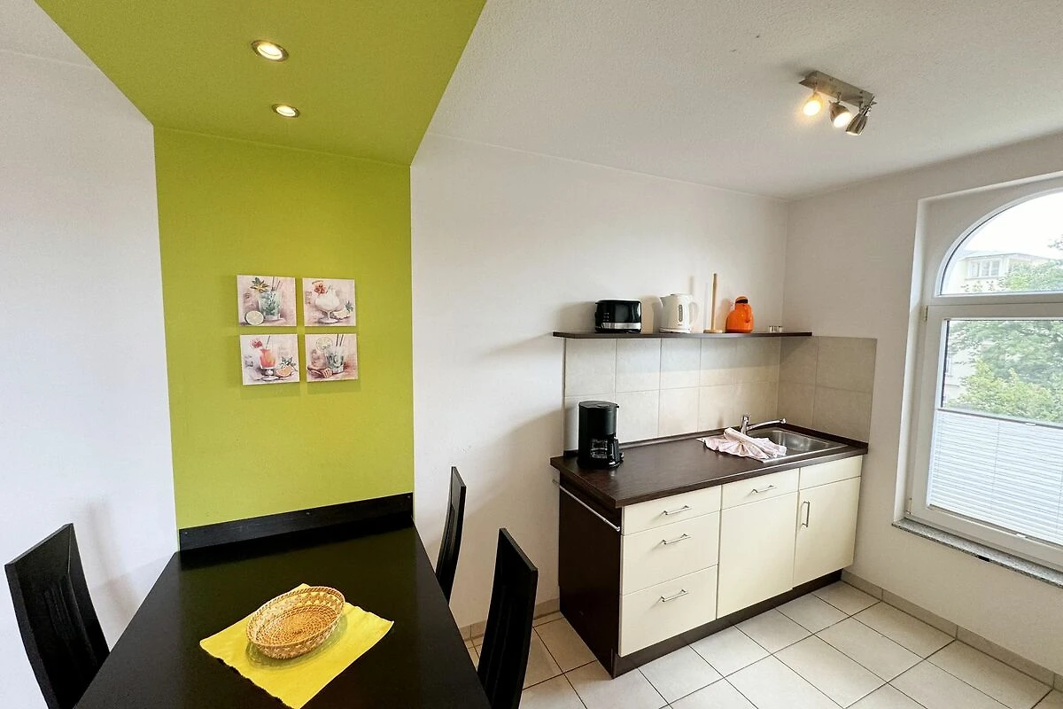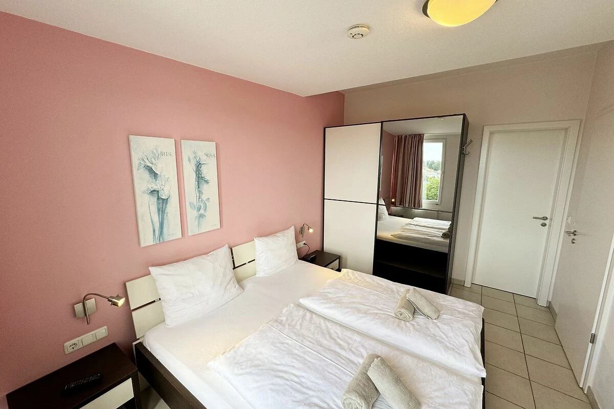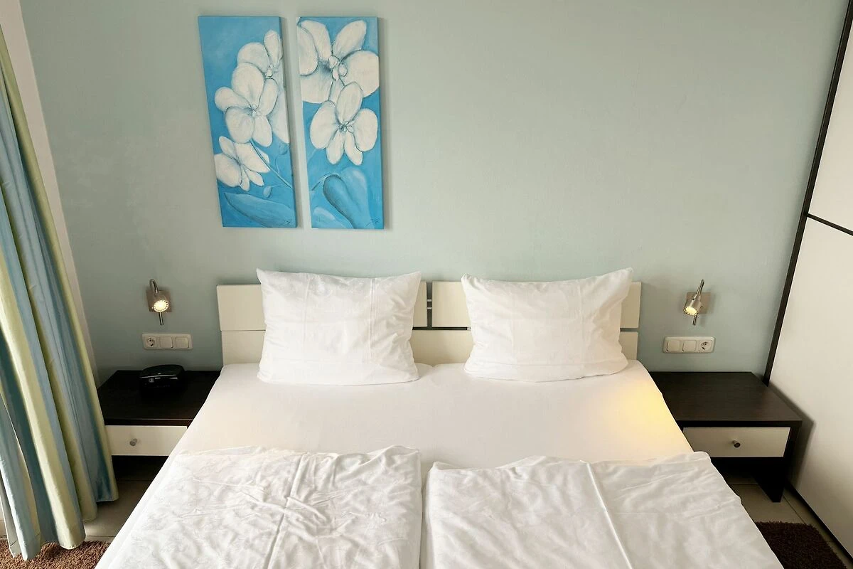 Die grosszügige und lichtdurchflutete Maisonette / Ferienwohnung Nr. 10 bietet Ihnen ausreichend Platz für max. 4 Erwachsene. Die Wohnung befindet sich im Obergeschoss und ist bequem per Fahrstuhl von der Tiefgarage aus zu erreichen. Die Wohnung ist als Nichtraucherwohnung deklariert und erstreckt sich mit Ihren 72 qm über 2 Etagen. Der sehr gemütliche eingerichtete Wohnbereich ist der Dreh- und Angelpunkt der Wohnung. Hier befindet Sie eine hochwertige Couch, 2 Sessel, Couchtisch, eine Leselampe sowie einem Smart-TV (32 Zoll) mit DVD-Player/Heimkino und Internetanschluss per WLAN (inklusive). Angrenzend an den Wohnbereich finden Sie eine moderne und komplett ausgestattete Küchenzeile mit Geschirrspüler, Mikrowelle, Kühlschrank mit Eisfach, Ceranfeld, Backofen, Kaffeemaschine, Toaster, Wasserkocher, diversen Küchenutensilien und einen Holzesstisch mit 5 Stühlen. Das 1. Schlafzimmer finden Sie auf der gleichen Ebene wie den Wohn- & Essbereich. Das Schlafzimmer verfügt über ein Doppelbett (1,80m x 2,00m) mit verstellbaren Lattenrosten, Nachtischkonsolen, Verdunklungsmöglichkeit und grossem Kleiderschrank mit Spiegel. In dem 1. Bad finden Sie eine Dusche, WC, Waschtisch, Kosmetikspiegel, Fön, Fussbodenheizung und einen Handtuchtrockner für Ihren alltäglichen Gebrauch, wieder. Um Ihren Urlaubstag in Ruhe ausklingen zu lassen, erreichen Sie vom Wohnbereich den begehbaren Süd-Westbalkon mit herrlichem Blick auf das Ostseebad Sellin. Durch die im Wohnbereich vorhandene Treppe gelangen Sie in das 2. Schlafzimmer, wo Sie ein Doppelbett (1,80m x 2,00m) mit verstellbaren Lattenrosten, Nachtischkonsolen, Verdunklungsmöglichkeit, Smart-TV und grossem Kleiderschrank mit Spiegel wiederfinden. Angrenzend befindet sich das 2. Bad mit Dusche, WC, Waschtisch, Handtuchtrockner und einer Fussbodenheizung. Im Gemeinschafskeller können Sie gegen einen Aufpreis die gemeinschaftliche Waschmaschine und den Trockner nutzen. Die Wertmarken können Sie auf Nachfrage während Ihres Urlaubes erwerben. Die Erstausstattung eines Wäschepaketes (komplette Bettwäsche, 1 Duschhandtuch, 1 kleines Handtuch) können Sie bis 14 Tage vor Anreise gegen einen Aufpreis dazu buchen oder durch eigene ergänzen. Ab 2 gebuchten Paketen erhalten Sie einmalig 1 Geschirrhandtuch und 1 Duschvorleger hinzu. Ein eigener Pkw-Stellplatz Nr. 10 und ein Fahrradraum gehören zur Wohnung und befinden sich in der hauseigenen Tiefgarage (Einfahrtshöhe 2,10 m). Haustiere sind in der Wohnung nicht erlaubt.