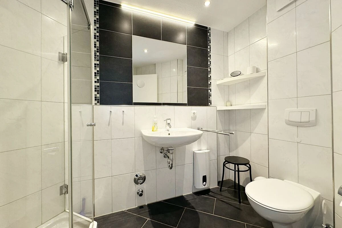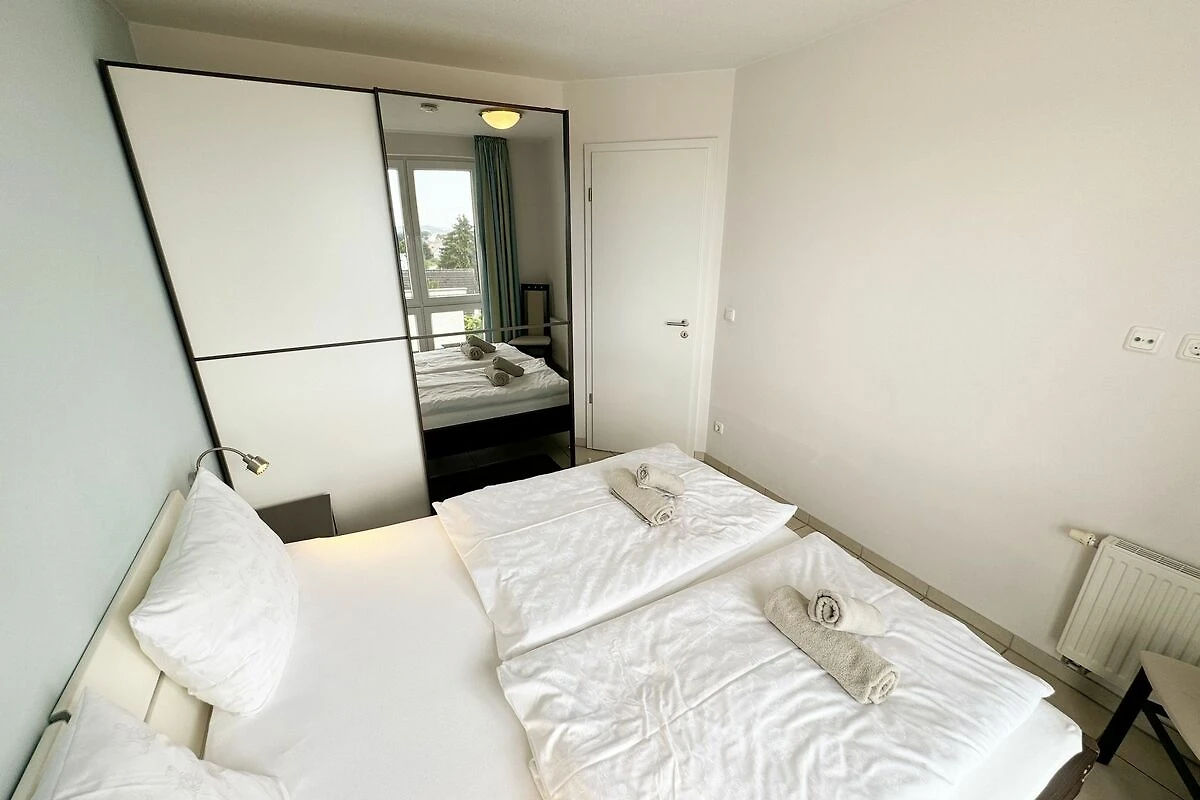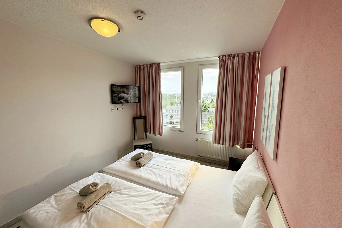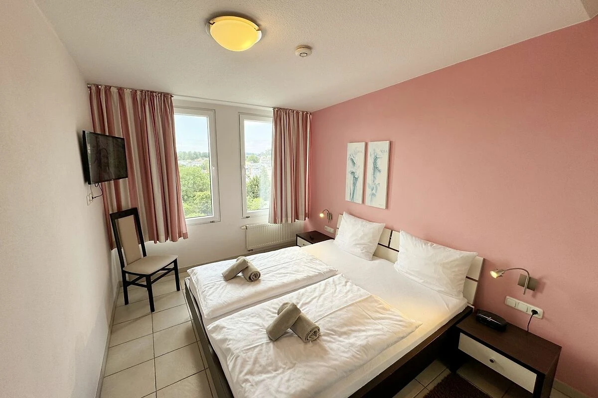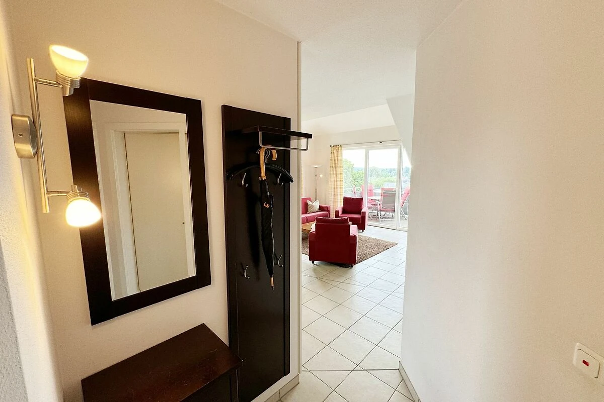 Die grosszügige und lichtdurchflutete Maisonette / Ferienwohnung Nr. 10 bietet Ihnen ausreichend Platz für max. 4 Erwachsene. Die Wohnung befindet sich im Obergeschoss und ist bequem per Fahrstuhl von der Tiefgarage aus zu erreichen. Die Wohnung ist als Nichtraucherwohnung deklariert und erstreckt sich mit Ihren 72 qm über 2 Etagen. Der sehr gemütliche eingerichtete Wohnbereich ist der Dreh- und Angelpunkt der Wohnung. Hier befindet Sie eine hochwertige Couch, 2 Sessel, Couchtisch, eine Leselampe sowie einem Smart-TV (32 Zoll) mit DVD-Player/Heimkino und Internetanschluss per WLAN (inklusive). Angrenzend an den Wohnbereich finden Sie eine moderne und komplett ausgestattete Küchenzeile mit Geschirrspüler, Mikrowelle, Kühlschrank mit Eisfach, Ceranfeld, Backofen, Kaffeemaschine, Toaster, Wasserkocher, diversen Küchenutensilien und einen Holzesstisch mit 5 Stühlen. Das 1. Schlafzimmer finden Sie auf der gleichen Ebene wie den Wohn- & Essbereich. Das Schlafzimmer verfügt über ein Doppelbett (1,80m x 2,00m) mit verstellbaren Lattenrosten, Nachtischkonsolen, Verdunklungsmöglichkeit und grossem Kleiderschrank mit Spiegel. In dem 1. Bad finden Sie eine Dusche, WC, Waschtisch, Kosmetikspiegel, Fön, Fussbodenheizung und einen Handtuchtrockner für Ihren alltäglichen Gebrauch, wieder. Um Ihren Urlaubstag in Ruhe ausklingen zu lassen, erreichen Sie vom Wohnbereich den begehbaren Süd-Westbalkon mit herrlichem Blick auf das Ostseebad Sellin. Durch die im Wohnbereich vorhandene Treppe gelangen Sie in das 2. Schlafzimmer, wo Sie ein Doppelbett (1,80m x 2,00m) mit verstellbaren Lattenrosten, Nachtischkonsolen, Verdunklungsmöglichkeit, Smart-TV und grossem Kleiderschrank mit Spiegel wiederfinden. Angrenzend befindet sich das 2. Bad mit Dusche, WC, Waschtisch, Handtuchtrockner und einer Fussbodenheizung. Im Gemeinschafskeller können Sie gegen einen Aufpreis die gemeinschaftliche Waschmaschine und den Trockner nutzen. Die Wertmarken können Sie auf Nachfrage während Ihres Urlaubes erwerben. Die Erstausstattung eines Wäschepaketes (komplette Bettwäsche, 1 Duschhandtuch, 1 kleines Handtuch) können Sie bis 14 Tage vor Anreise gegen einen Aufpreis dazu buchen oder durch eigene ergänzen. Ab 2 gebuchten Paketen erhalten Sie einmalig 1 Geschirrhandtuch und 1 Duschvorleger hinzu. Ein eigener Pkw-Stellplatz Nr. 10 und ein Fahrradraum gehören zur Wohnung und befinden sich in der hauseigenen Tiefgarage (Einfahrtshöhe 2,10 m). Haustiere sind in der Wohnung nicht erlaubt.