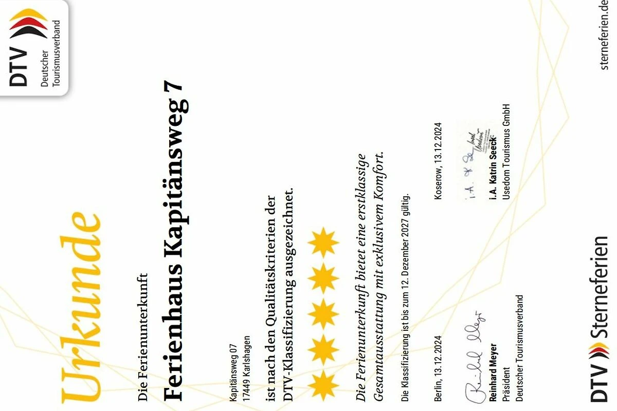 VAKON Ostseeland in Karlshagen ist eine in Mecklenburg-Vorpommern einzigartige 5-Sterne-Ferienhaus-Anlage bestehend aus 42 grosszügigen, schilfrohrgedeckten Strandhäusern mit bis zu 225 m² Wohnfläche und 26 Ferienwohnungen. Dieses exklusive, 2012 erbaute Strandhaus mit 120 m² Wohnfläche ist ca. 4 Gehminuten vom Strand entfernt.