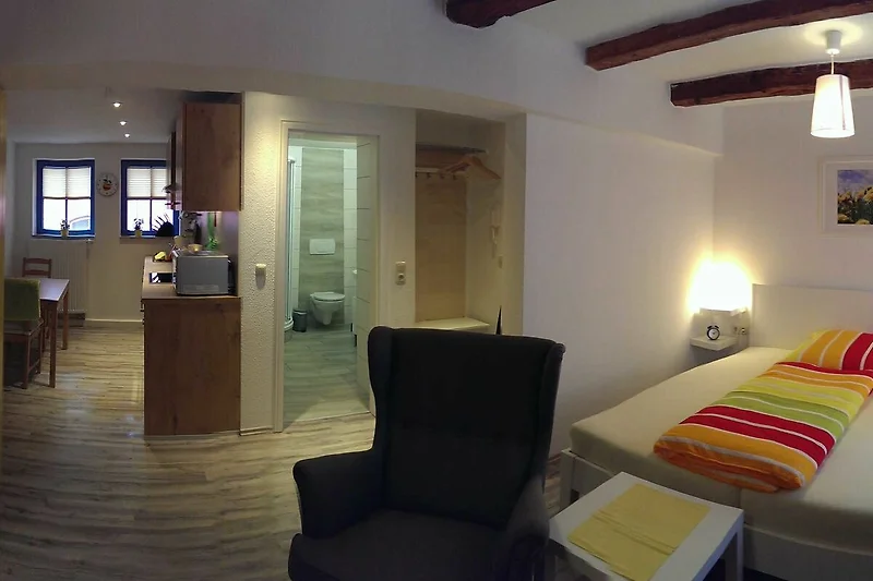 Das Objekt mit den 7 Ferienwohnungen befindet sich im Herzen der Altstadt, zwischen Domplatz und Fischmarkt. Damit können alle Sehenswürdigkeiten bestens zu Fuss erkundet werden. Aber auch die Messe Erfurt und der egapark können durch die sehr gute Anbindung an den öffentlichen Nahverkehr schnell erreicht werden.