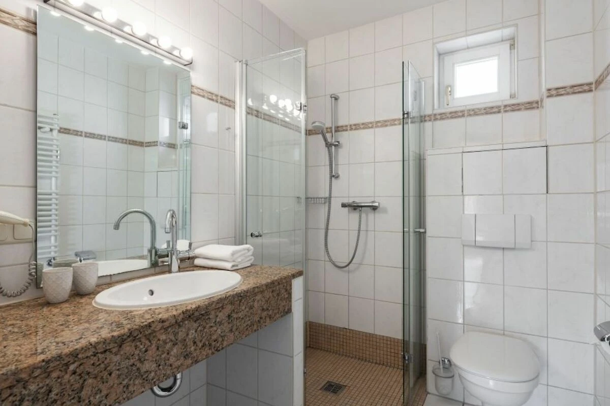 Im Haus gibt es keinen Fahrstuhl. Im Kellerbereich des Hauses II befindet sich ein Raum mit Waschmaschine und Trockner. Diese können gegen Gebühr genutzt werden.