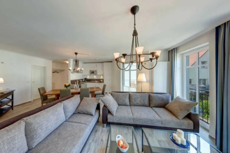 STRANDNAH, GROSS, MODERN! Mit 2 BALKONEN (je ca. 11 qm), FAHRSTUHL, SAUNA und nur ca. 100 m zur STRANDPROMENADE! Grosszügige elegante 4 - Zimmer - Wohnung mit sehr guter Ausstattung! 3 separate Schlafzimmer, 3 Bäder (2 davon ensuite), alle mit Fussbodenheizung. Die ensuite-Bäder verfügen über Wanne und Dusche bzw. Dusche. Das dritte Bad ist ein Saunabad mit Saunakabine und Schwalldusche. Der grosse Wohnbereich verfügt über eine vollausgestattete Küchenzeile, einen Essbereich und einen Couchbereich mit KAMINOFEN. Die Balkone sind möbliert. Die Wohnung verfügt über einen Pkw-Stellplatz in der hauseigenen Tiefgarage. Fahrradabstellfläche ist vorhanden. Vom Haus aus können Sie das Ortszentrum und die bekannte Ahlbecker Seebrücke in ca. 2 Minuten zu Fuss erreichen.