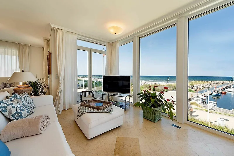 Zum 100 m breiten Sandstrand, Spielplatz und Yachthafen müssen Sie nur die Strandpromenade und den Ostsee-Radweg überqueren. Alle Wohnungen haben Meerblick!