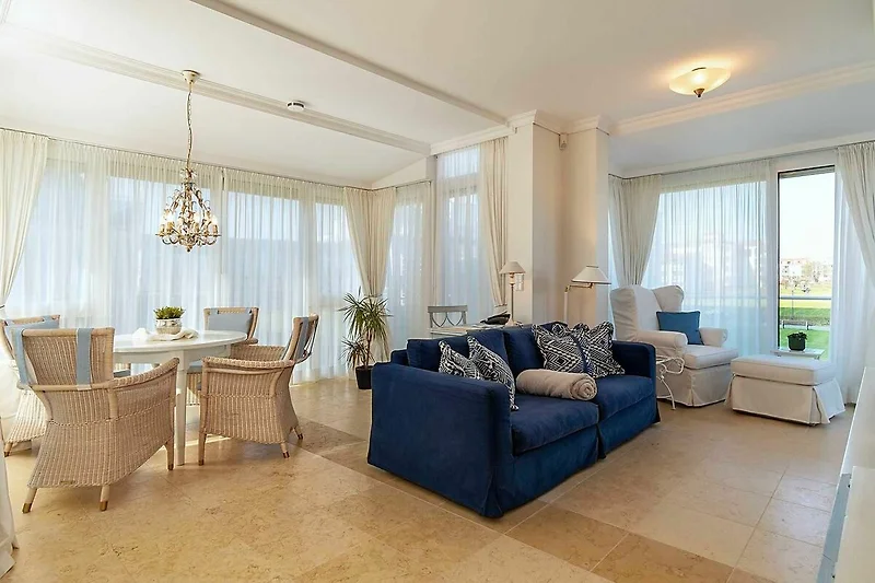Zum 100 m breiten Sandstrand, Spielplatz und Yachthafen müssen Sie nur die Strandpromenade und den Ostsee-Radweg überqueren. Alle Wohnungen haben Meerblick!